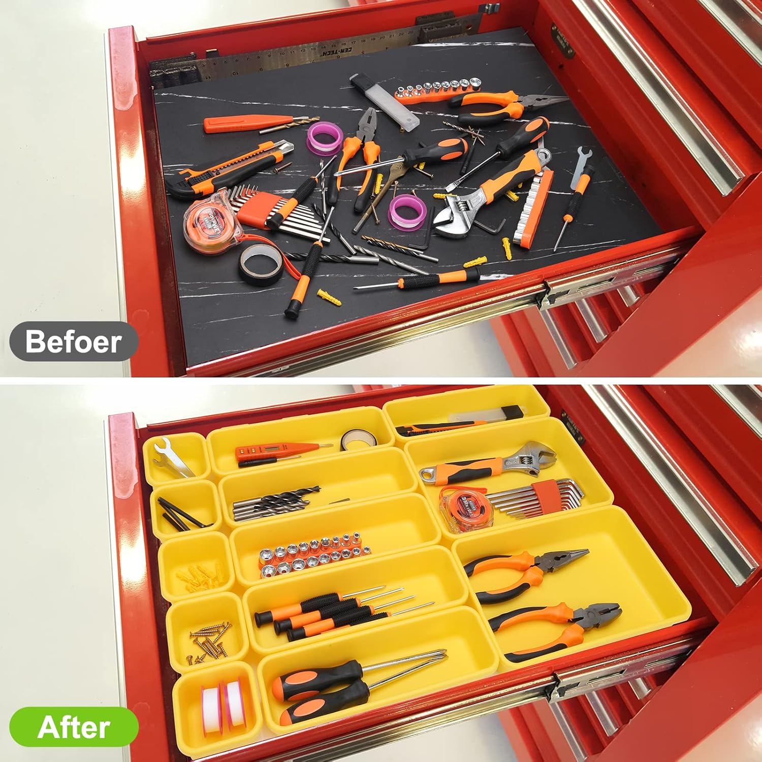 42 Pack Tool Box Organizer Tool Tray Dividers, Rolling Tool Chest Cart Cabinet Workbench Desk Drawer Organization and Storage for Hardware, Parts, Screws, Nuts, Small Tools Organization(Yellow)