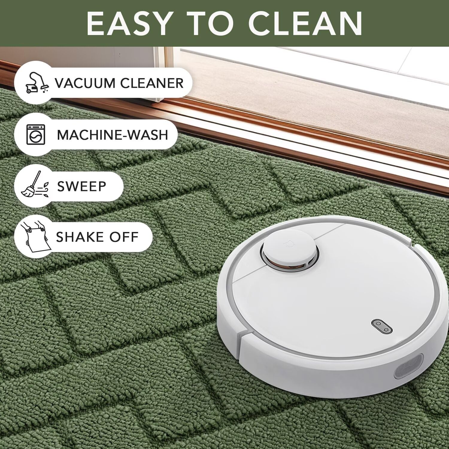 hicorfe Front Door Mat Outside Entrance,36"x59" Absorbent Muddy Dirt Resist Welcome Door Mats Outdoor Indoor,Stain and Fade Resistant,Non Slip Backing Entry Mat Doormat for Entryway(Green)
