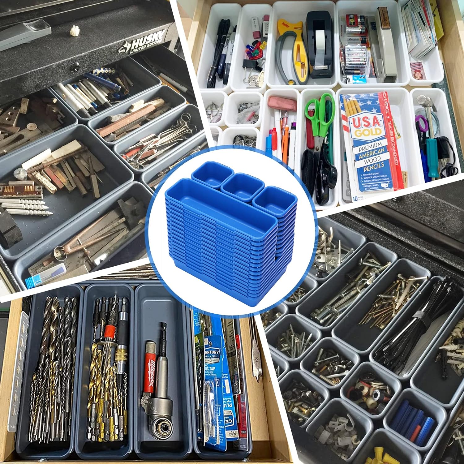 KeFanta 42 Pack Tool Box Organizer Tool Tray Dividers, Rolling Tool Chest Cart Cabinet Workbench Desk Drawer Organization and Storage for Hardware, Parts, Screws, Nuts, Small Tools Organization(Blue)