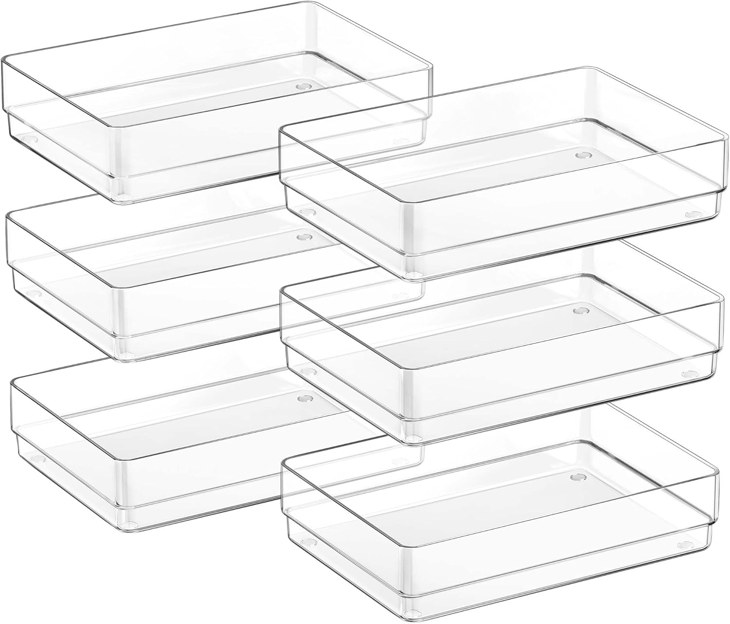 SMARTAKE 6 PCS Clear Plastic Drawer Organizers Set, Large Size Non-Slip Desk Drawer Organizer, Versatile Bathroom and Vanity Drawer Organizer Trays for Makeup, Bedroom, Office, Kitchen Utensils