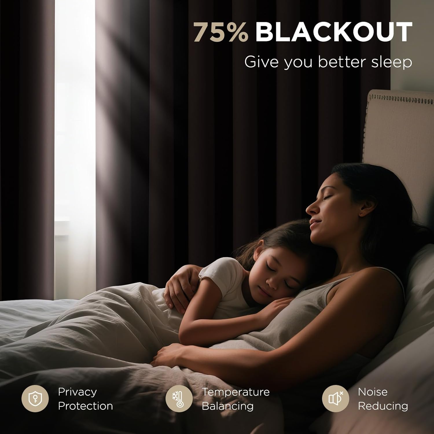 - 【Blackout Performance】Your go-to choice for adjusting indoor light! These curtains block over 75% of sunlight and outdoor glare, creating a cozier atmosphere in bedrooms, living rooms, and more. They also provide excellent privacy protection for your home. Pro Tip: Darker-colored curtains offer even better blackout effects.