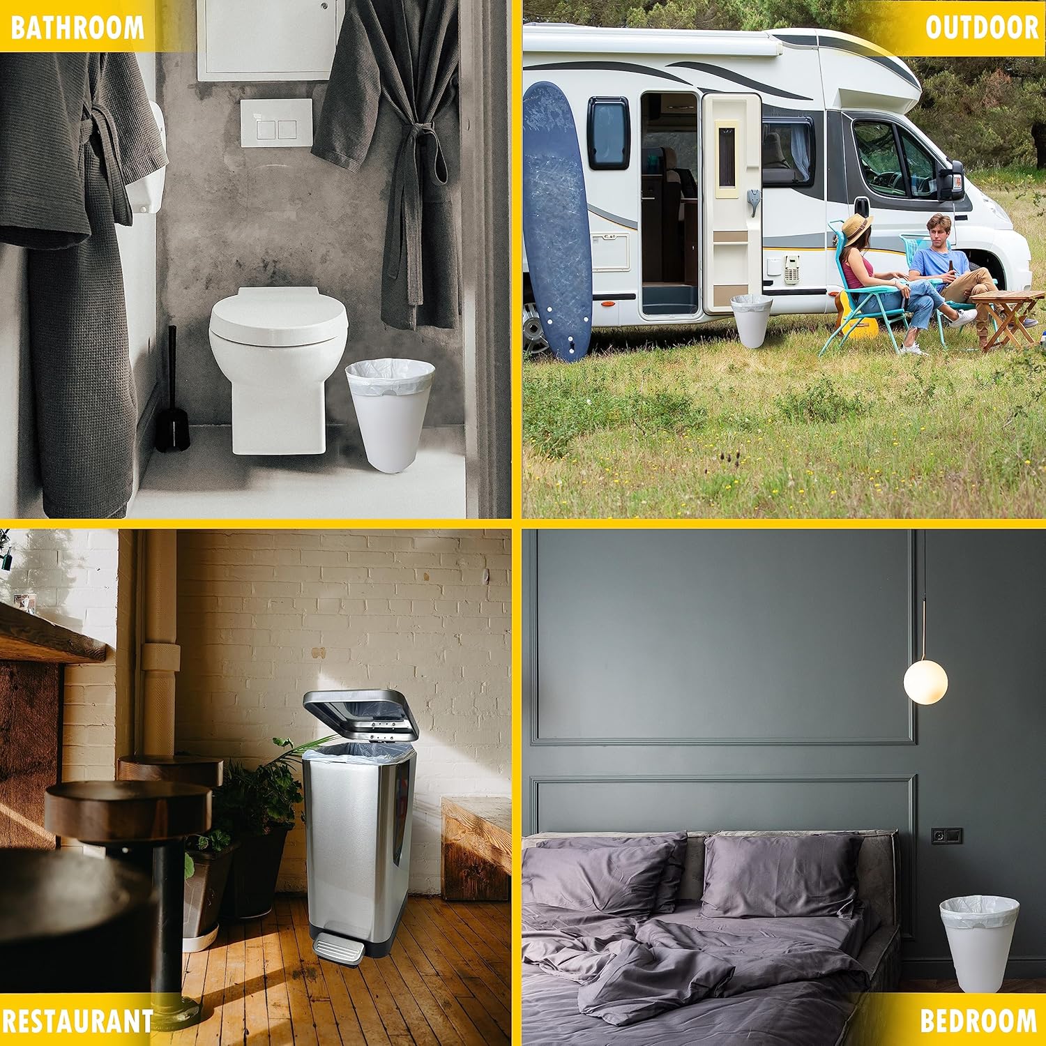 - Durable Trash Bags: Made from extra strong material for holding food waste and bathroom trash