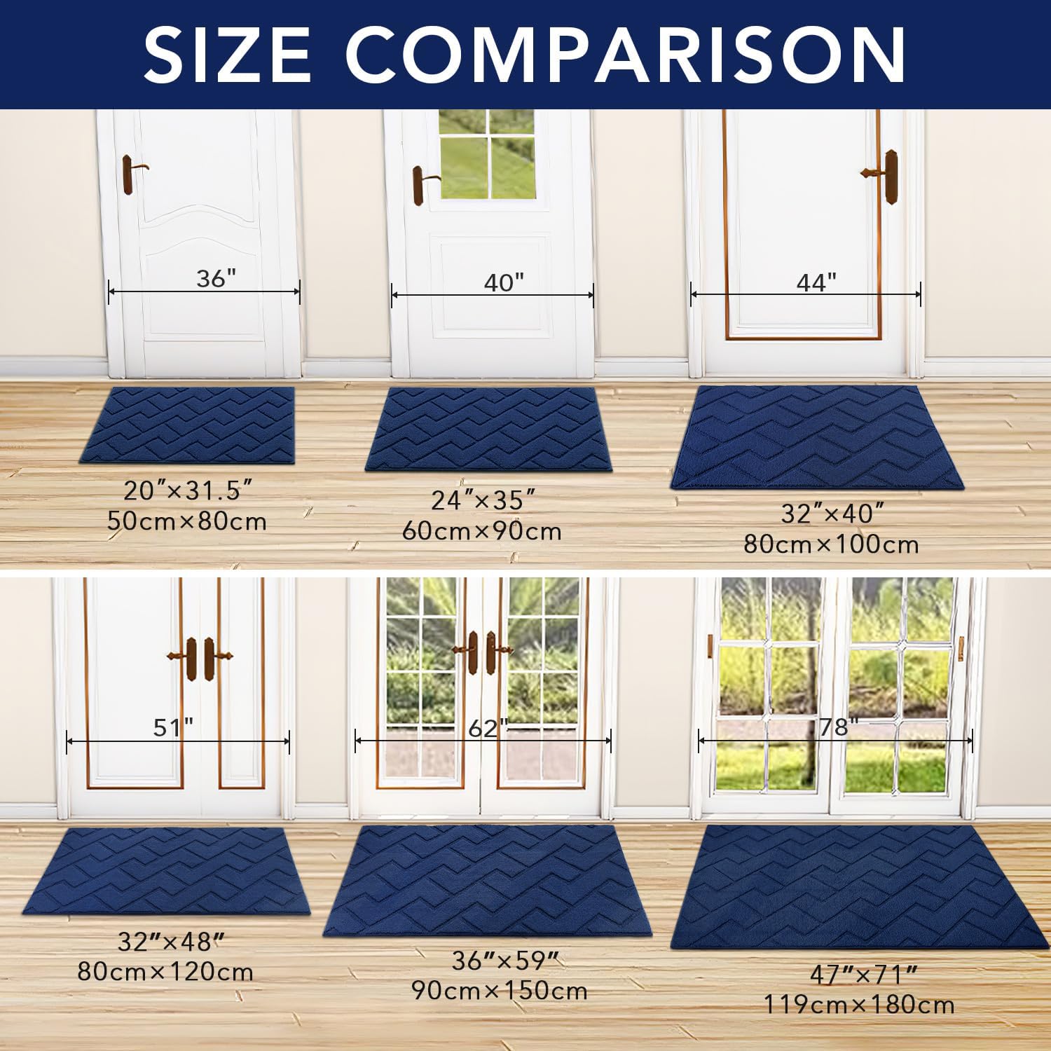hicorfe Indoor Doormat,Front Back Door Mat Rubber Backing Non Slip Door Mats 20"x59" Absorbent Resist Dirt Entrance Doormat Inside Floor Mats Entryway Washable Low-Profile for Patio,Garden(Navy Blue)