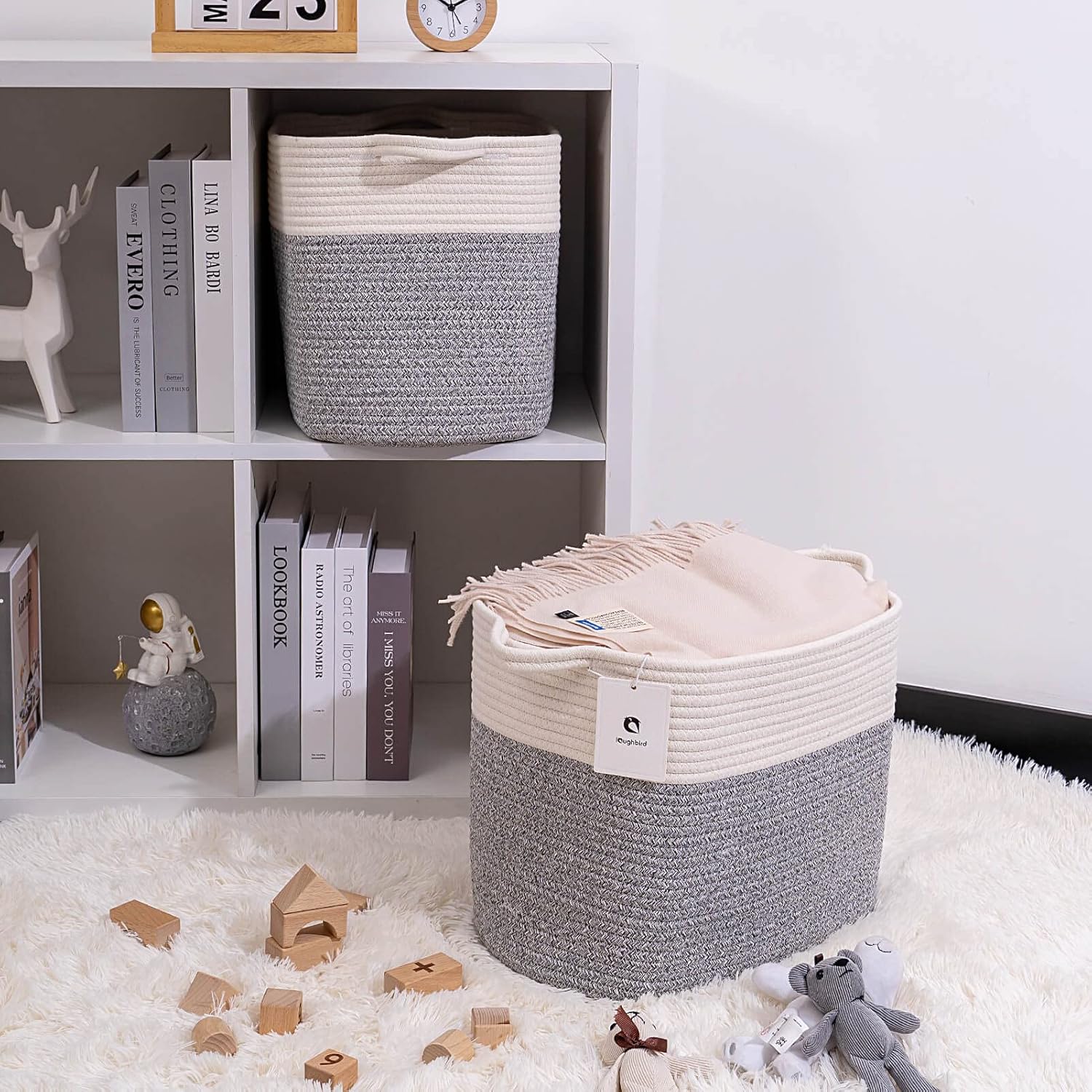 Medium and Large Woven Basket//With Handle, Used for Toys and Fabric Storage Basket used for Storing xl Storage Box, Decorative Storage Box Room 2pack (14L12H Silver Gray, 14L*10W*12H)