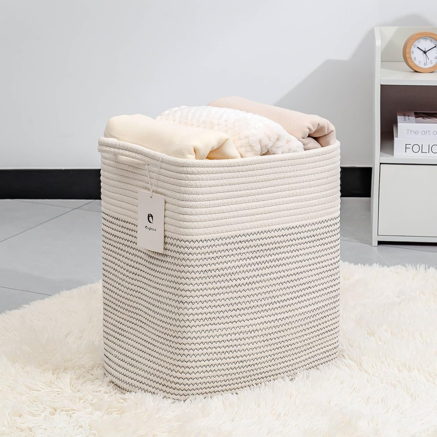 Medium and Large Woven Basket//With Handle, Used for Toys and Fabric Storage Basket used for Storing xl Storage Box, Decorative Storage Box Room (14L*15.7H I White/Black Line, 14L*10W*15.7H)