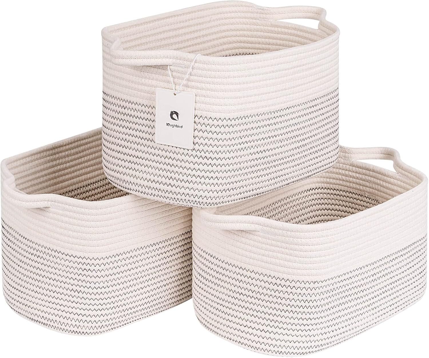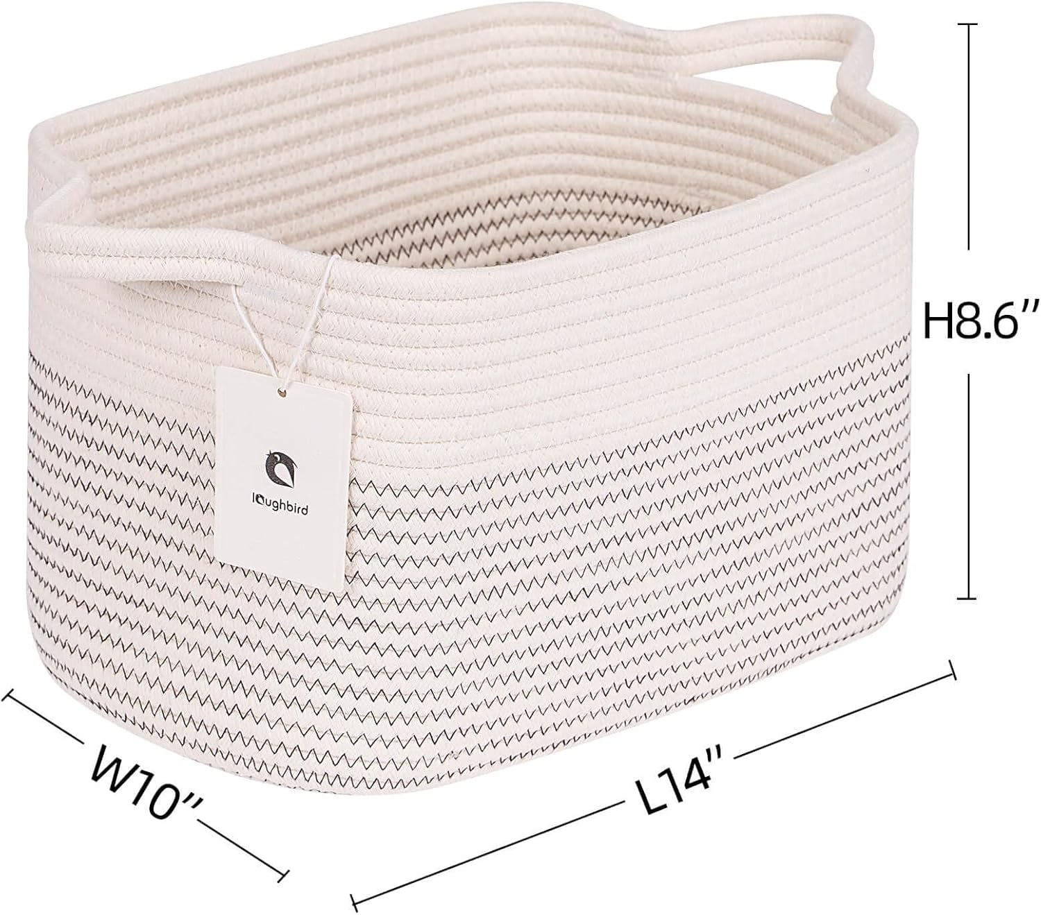 Medium and Large Woven Basket//With Handle, Used for Toys and Fabric Storage Basket used for Storing xl Storage Box, Decorative Storage Box Room 2pack (14L*10W*8.6H White/Black Line, 14Lx10Wx8.6H)