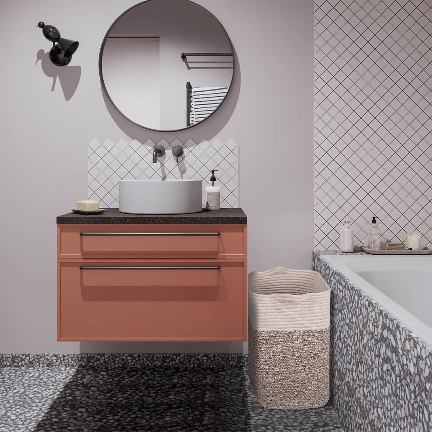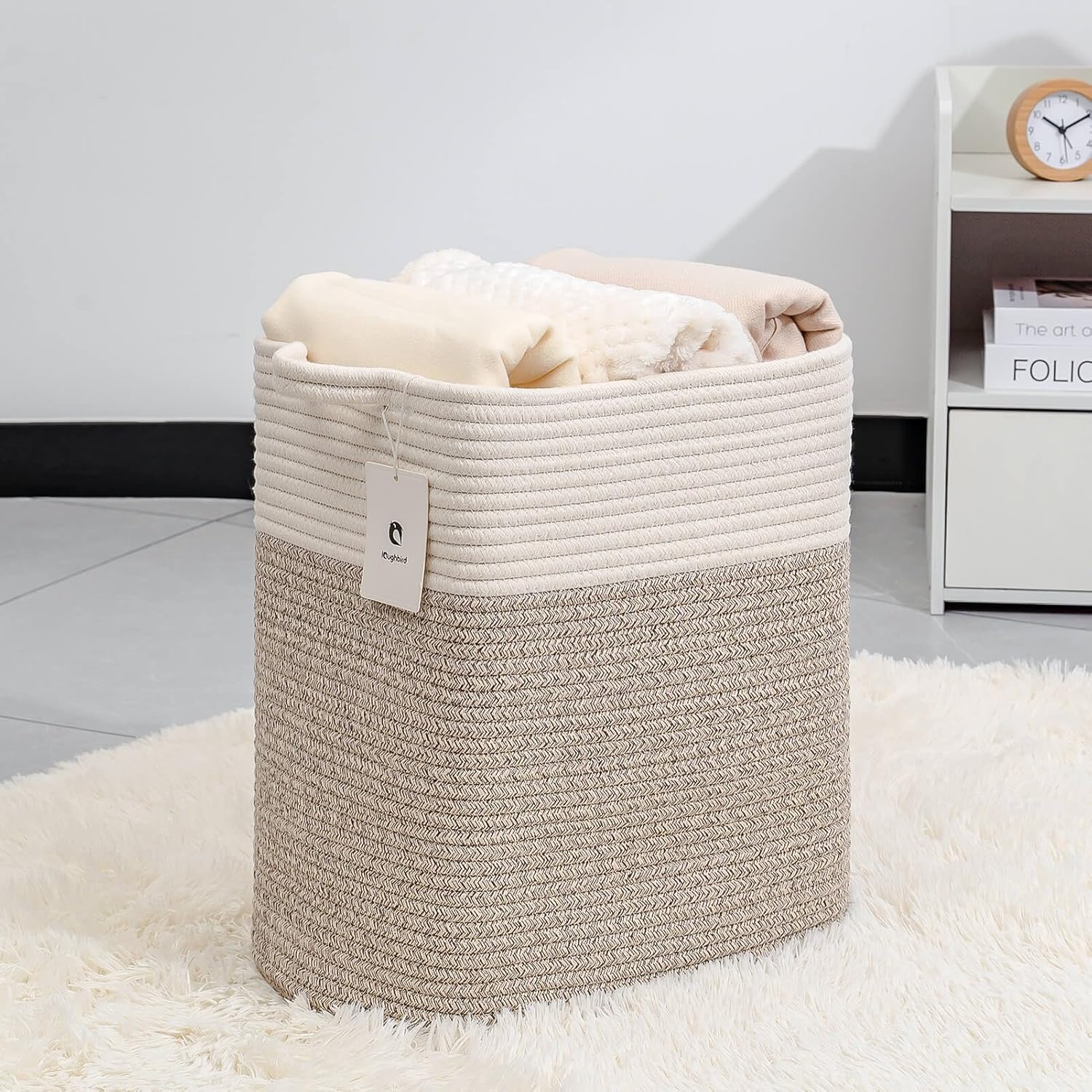 Medium and Large Woven Basket//With Handle, Used for Toys and Fabric Storage Basket used for Storing xl Storage Box, Decorative Storage Box Room (14L*15.7H WWhite Brown, 14L*10W*15.7H)