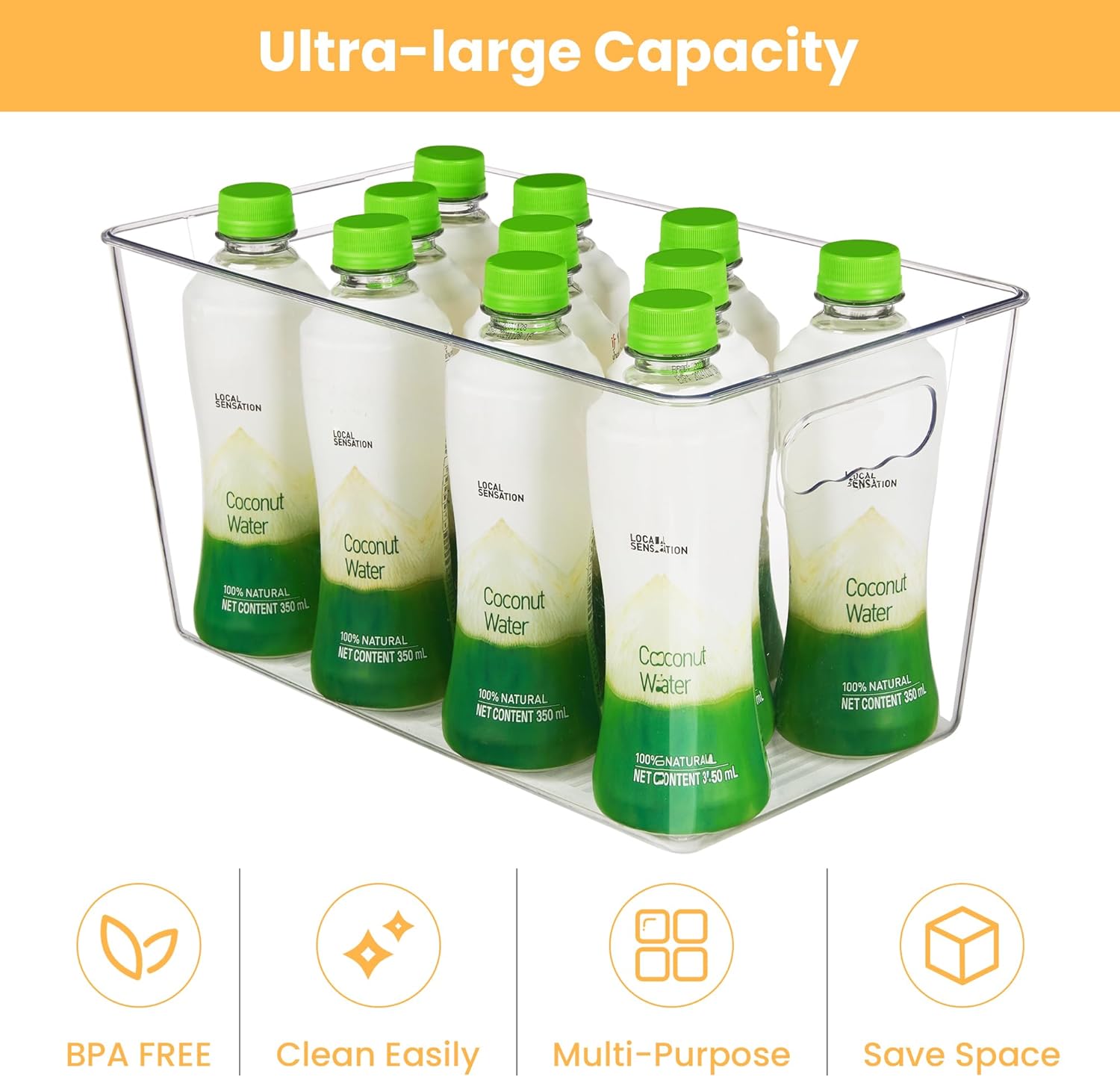 YIHONG Clear Plastic Storage Bins, 8 Pack Pantry Organizer Bins with Handle for Kitchen, Freezer,Cabinet,Closet Organization and Storage(XL)