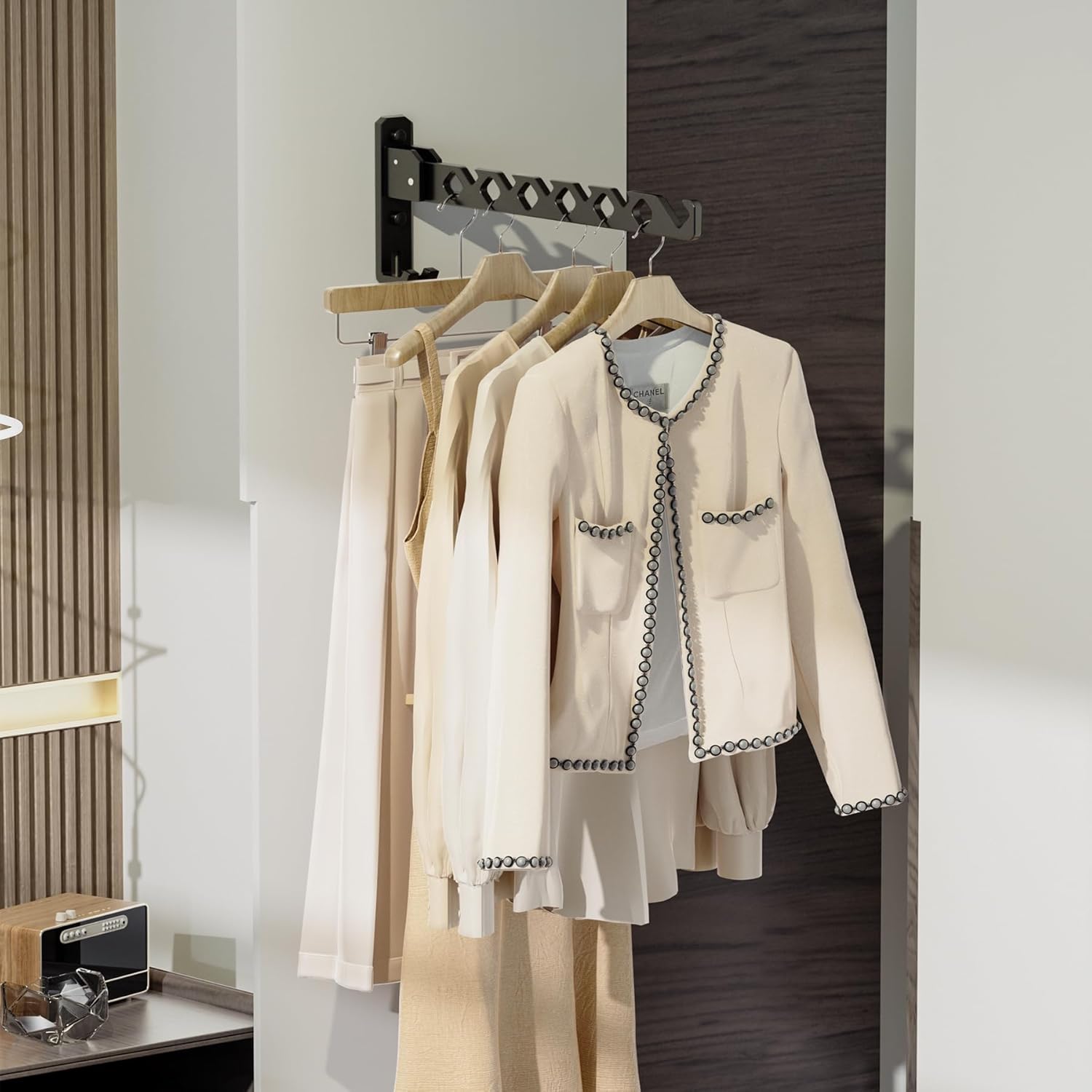 Dr.DJ Wall Mount Coat Hanger Holder Black Clothes Drying Organizer Rack Garment Hooks Aluminium Retractable Folding Indoor Wall Mounted Hanger Space Saver for Laundry Room Bedroom Black 2Pack
