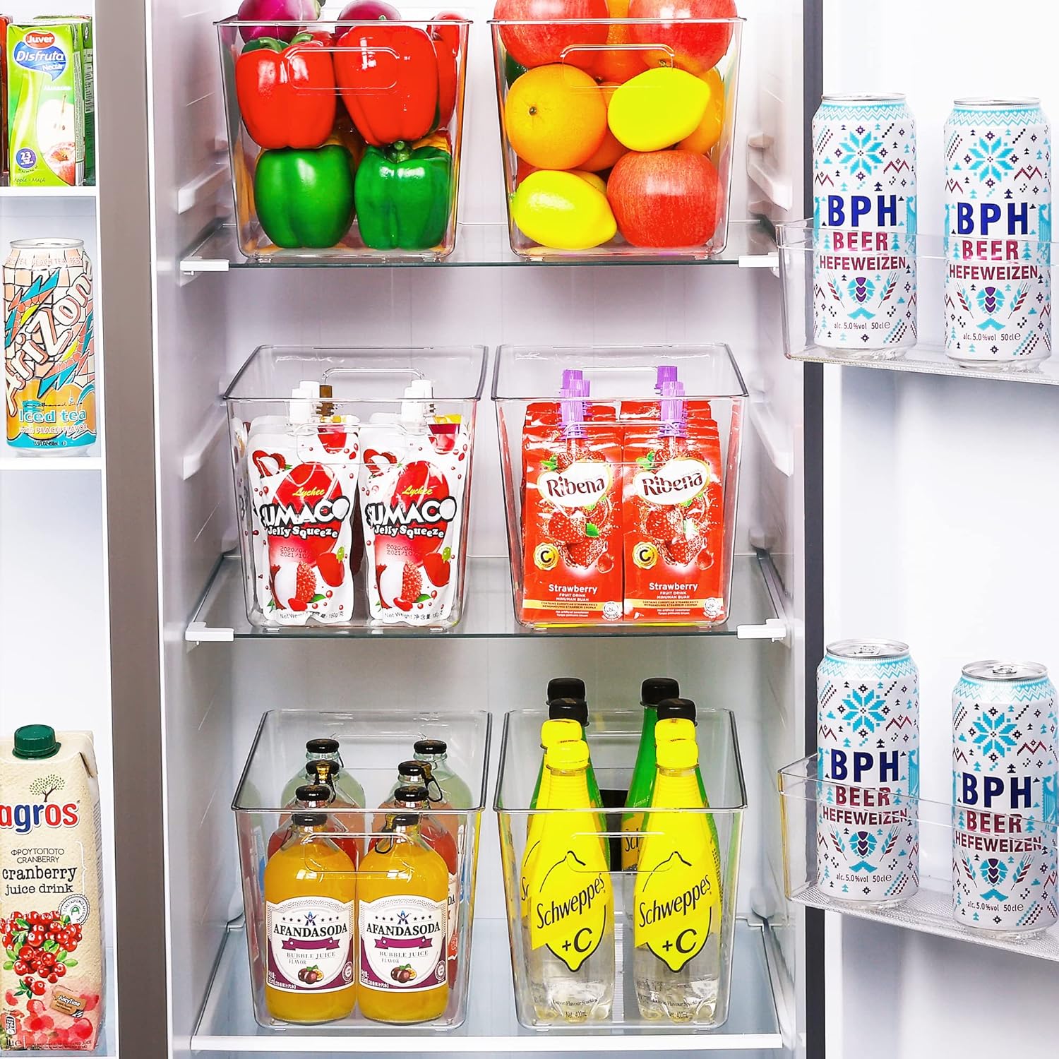 - Make Your Life Much Easier ---- You can use these pantry bins for various things throughout your home to organize and make your life easier. They are great for creating a clean and organized refrigerator or pantry. Ideal for fruit, vegetables, drinks, yogurts, canned goods, meat. You also can use them for storing dry goods in your pantry.