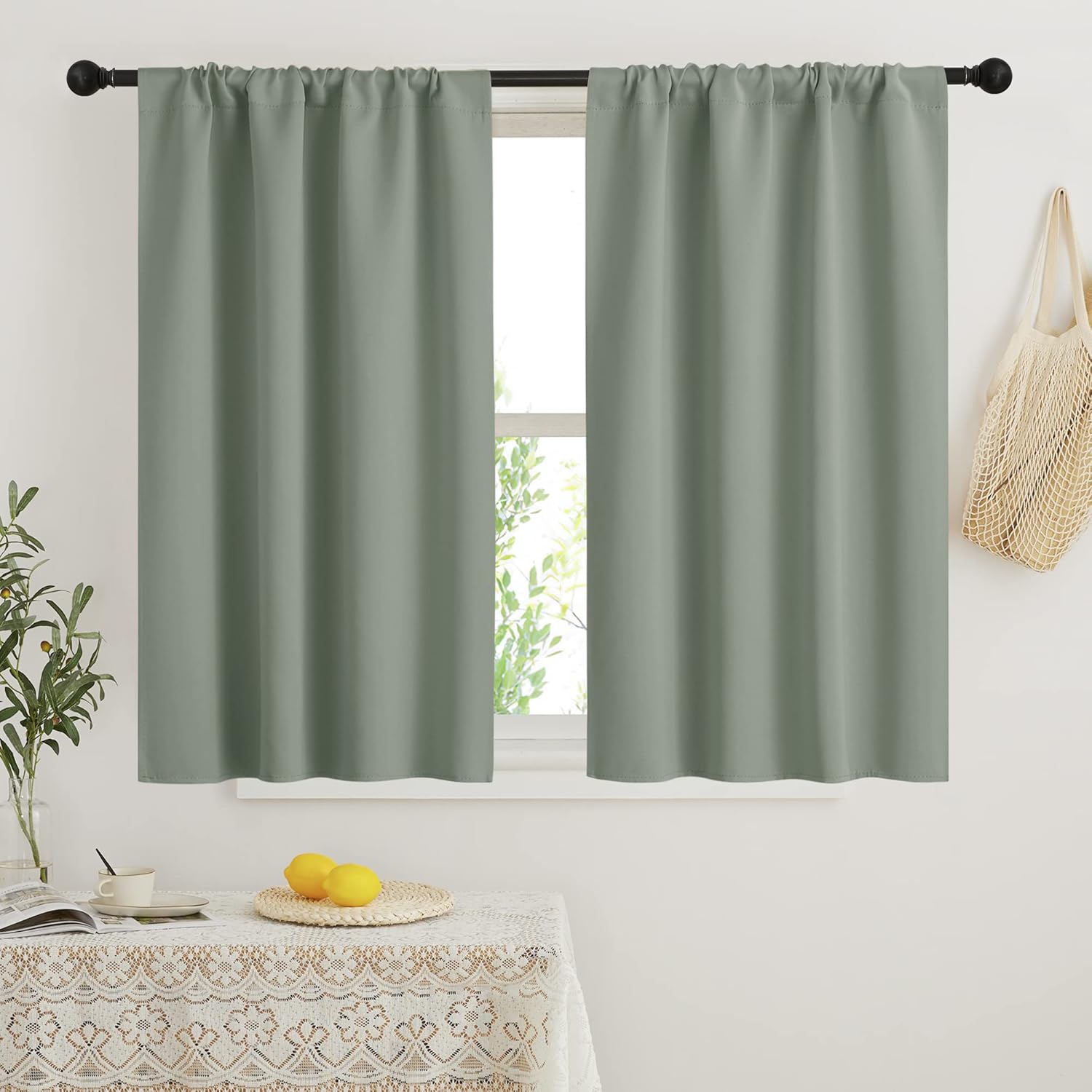RYB HOME Small Window Curtains Blackout - Privacy Energy Saving Insulating Curtains Blinds for Bedroom Bathroom Basement Kids Nursery Kitchen, W 34 x L 48 inches, Sea Green, 2 Panels