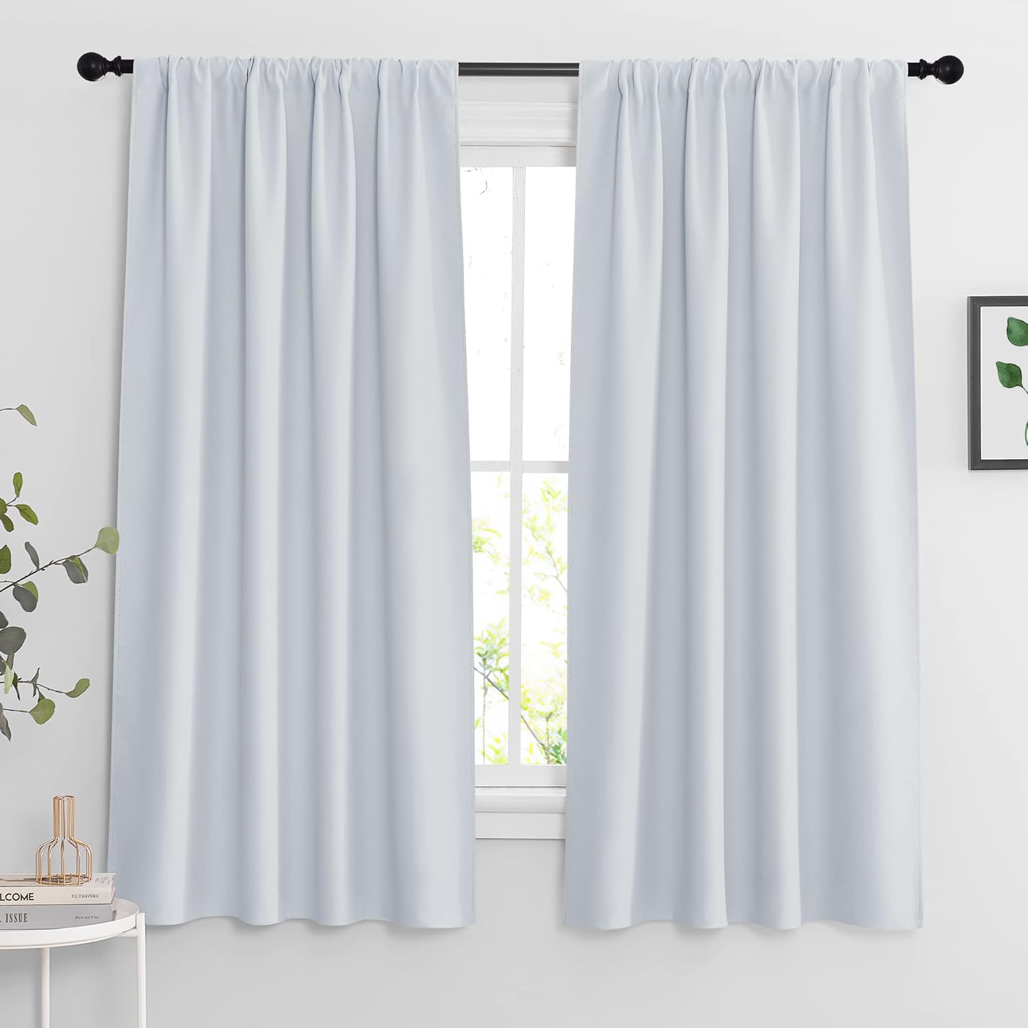 RYB HOME Blackout Curtains 63 inches Long - Energy Saving Insulation Large Window Curtain Blinds for Bedroom Living Room Dining Basement Home Office, W 62 x L 63 per Panel, Greyish White, 2 Pcs