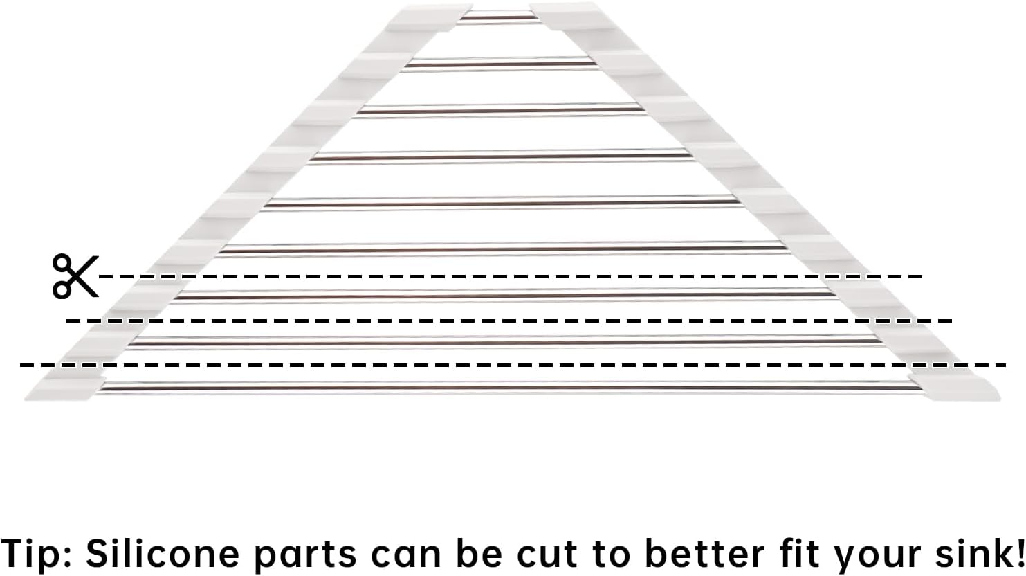 - âď¸ăCustomizable SizeăTailored to optimize your kitchen sink corner space with a triangular design. Too big? Simply use scissors to cut the silicone sides for a perfect fit. It's a handy tool that allows you to easily rinse and dry small items to keep your kitchen clean. Ideal for accommodating sponges, brushes, hand soap, dishes and more. Bottom Length: 16.2â, Side Length: 9â, Upper Length: 3.2â.