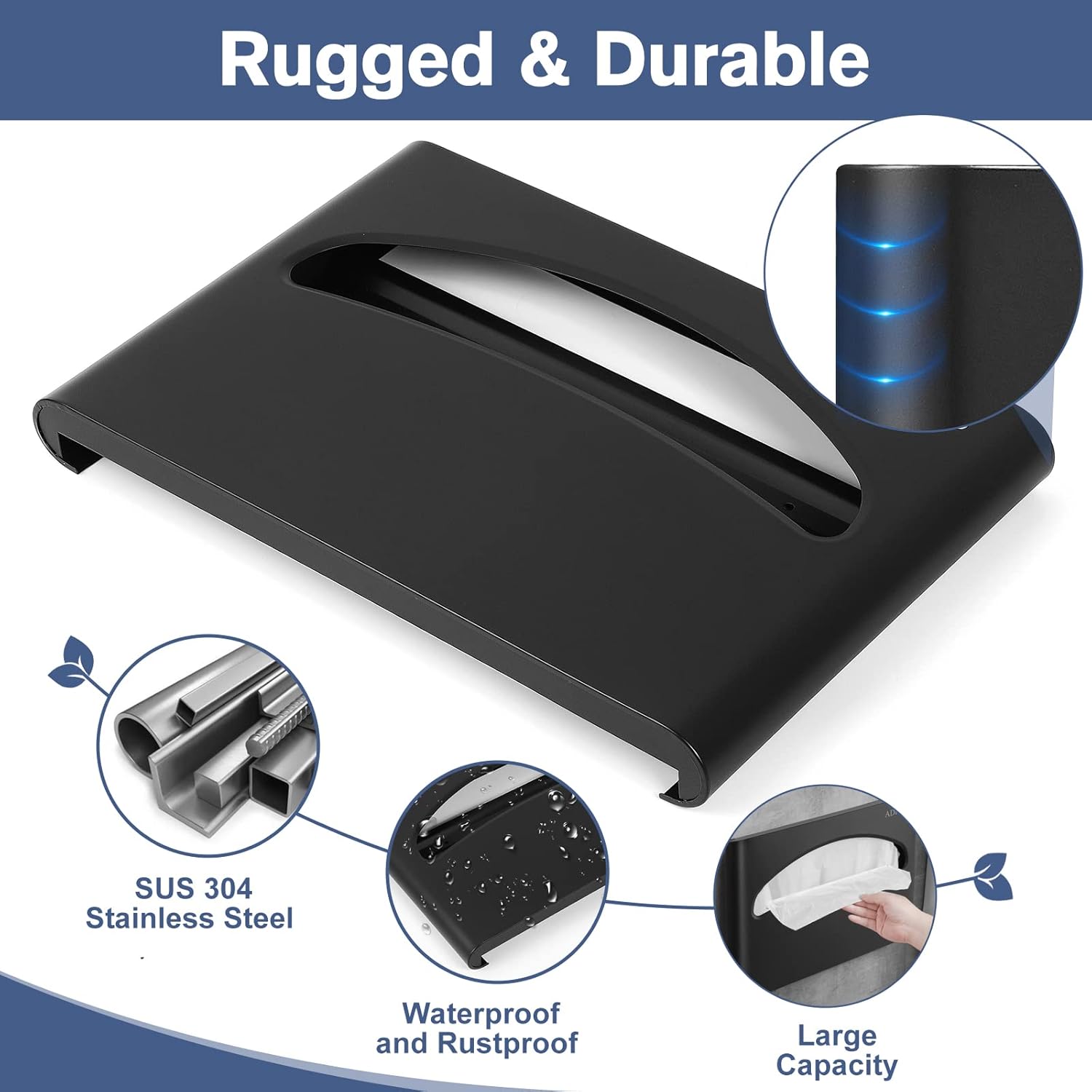 - PREMIUM- GRADE CONSTRUCTION Made in Durably 18/8 stainless steel with matte black finished.ADKO Toilet Seat Cover Dispenser can provide long-lasting strength and use for more then 5 years to come. 2 YEARS MANUFACTURER WARRANTY.