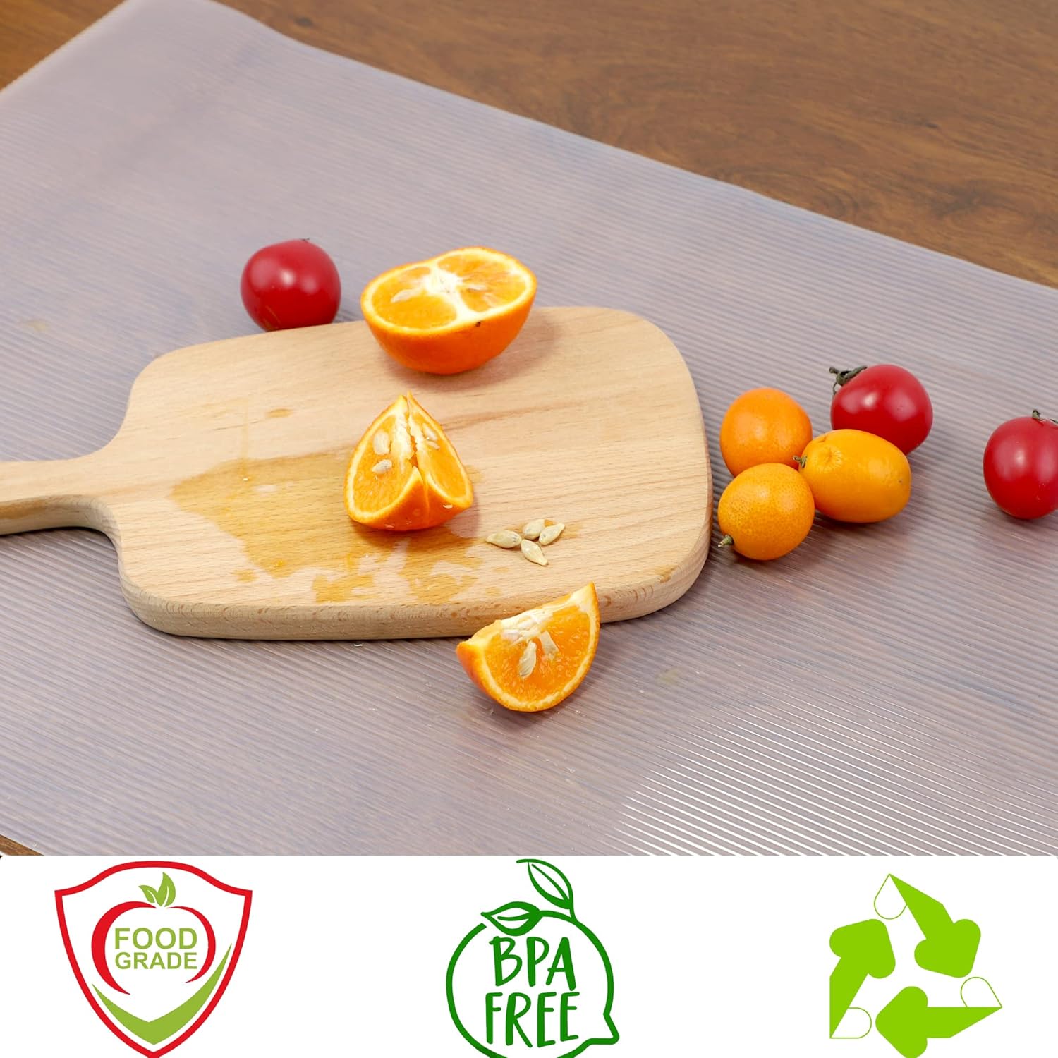 - ā SAFE & PREMIUM QUALITY MATERIAL -The shelf liners are made of high quality food grade EVA material, BPA free and could be used to contact fruits and vegetables directly. The EVA material cabinet liner is sturdy and duarblity, could be last for a long time in life and resued.