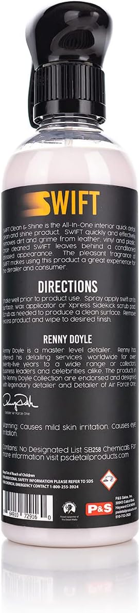 P & S Professional Detail Products Swift Clean & Shine - Interior Cleaner & Protectant for Leather, Vinyl, Plastic - Cleans, Conditions & Leaves a Satin Finish - Fresh Scent - 16 oz Spray