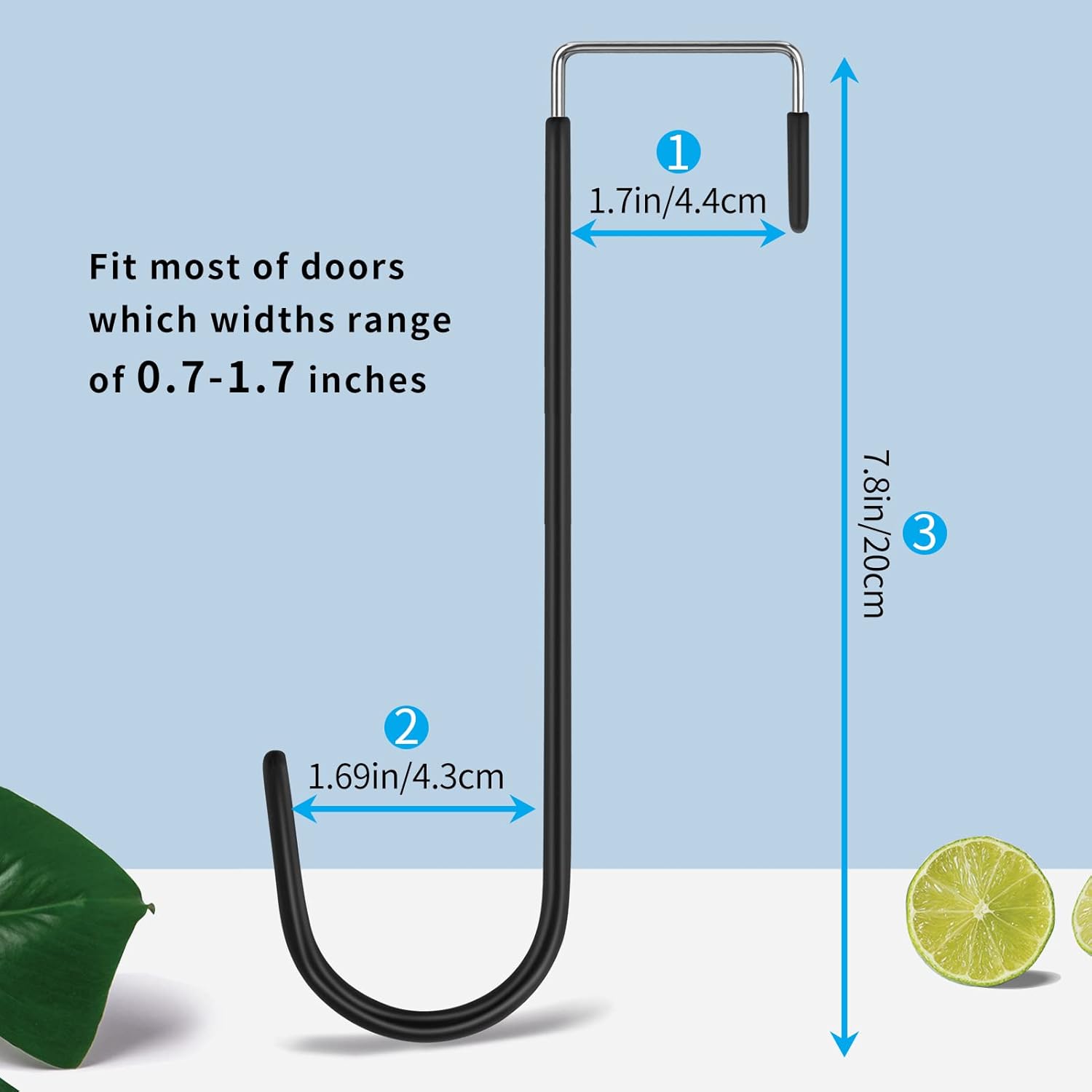 - Upgraded Size: This over the door hanger hooks length 7.8 inch, groove width 1.7 inch, fit most of doors which widths range of 0.7-1.7 inches, which perfectly fit more doors and help you reach the over door. Please measure your door before purchasing