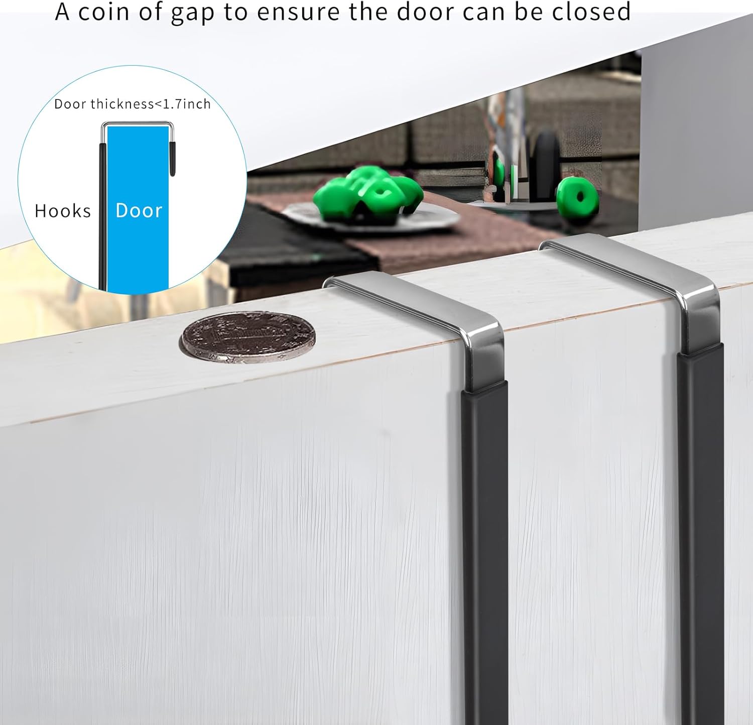- Soft Rubber: The door organizer hooks are built with soft rubber, non-slip and smooth surface keep the hooks in place without swinging and protect the doors or clothing from scratch