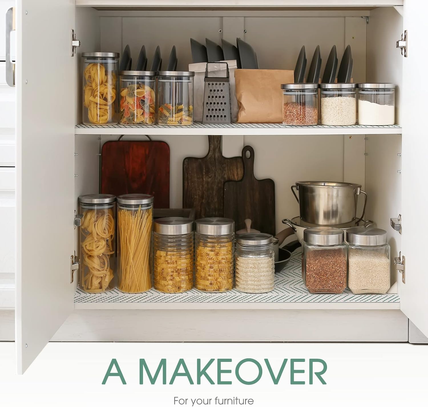 - Waterproof and Easy to Clean Kitchen Cabinet Liner:These storage shelf liners are waterproof and dust-proof which keeps belongings in your kitchen cabinet, fridge and drawer organized and protected from grease and spills. The non-adhesive shelf liners are easily removable and can be cleaned with mild soap and water