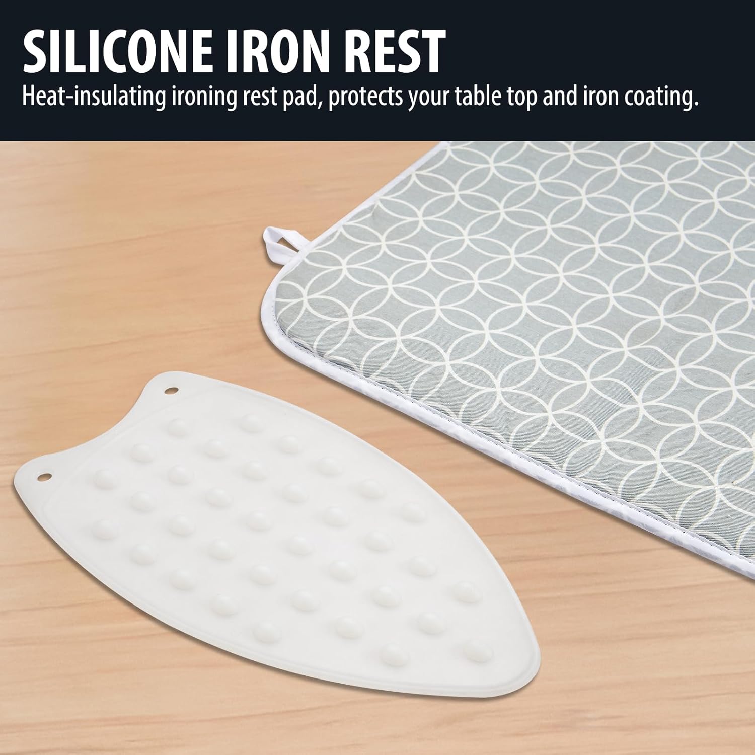 - SILICONE IRON REST PAD: The increased silicone bulges are good for heat dissipation, protect the iron coated and tabletop. What's more, the silicone pad is anti slip,it will keep your iron in place when you don't need it