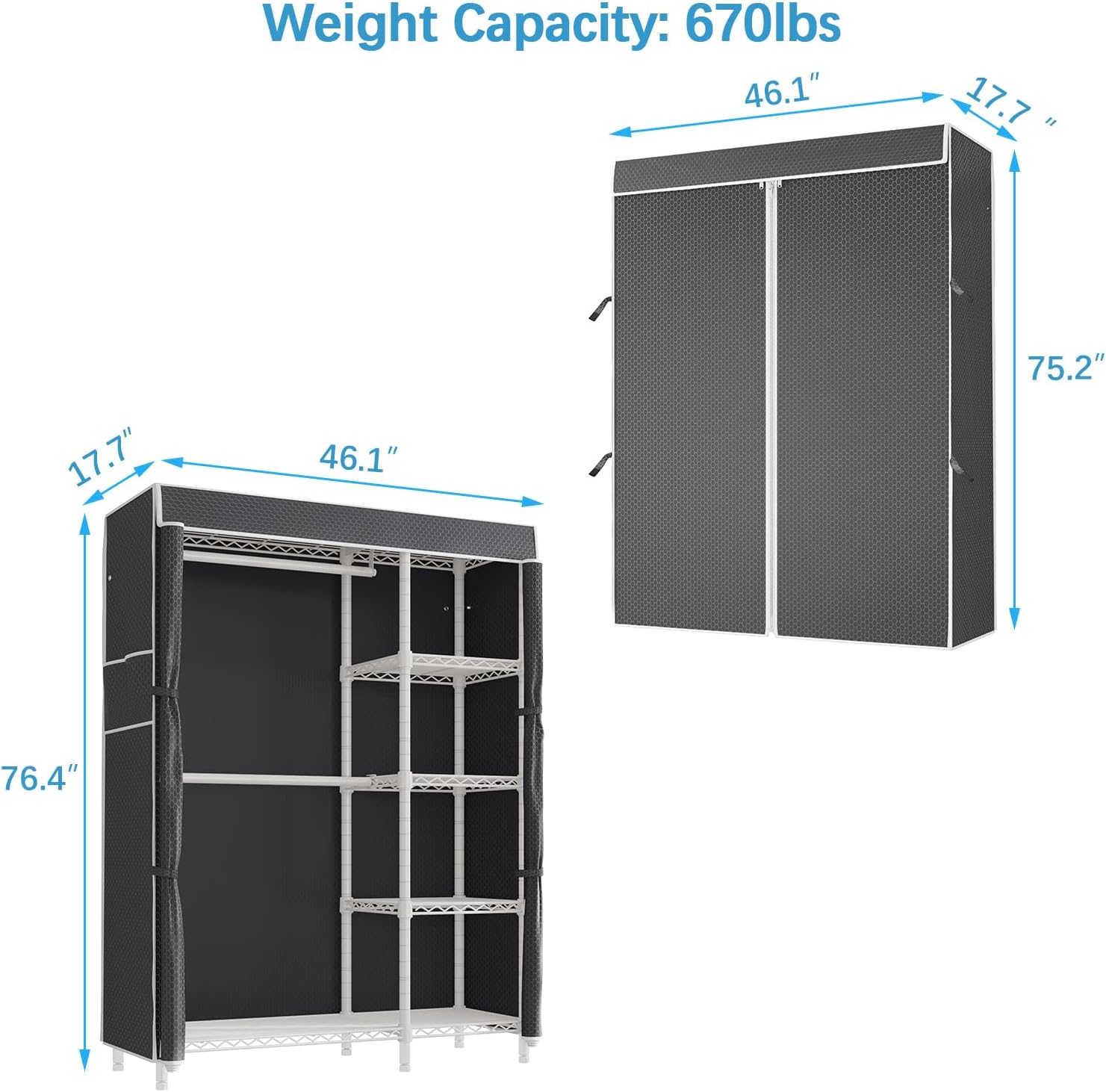 - 【Zippered Polyester Fabric Cover】Closet comes with upgraded polyester fabric cover, sturdy, wrinkle resistance, breathability keep garments dry. Easy to clean with damp cloth, and to keep your item away from dust
