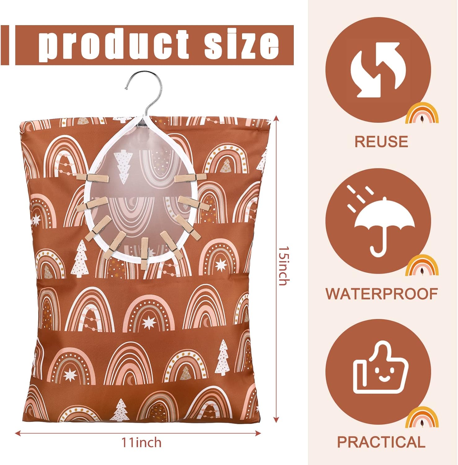 - Waterproof and Sturdy: the clothes pin hanging bag is made of polyester material with a stainless steel hanger, waterproof and sturdy, tear resistant and not easy to break or fade, can be applied for a long time