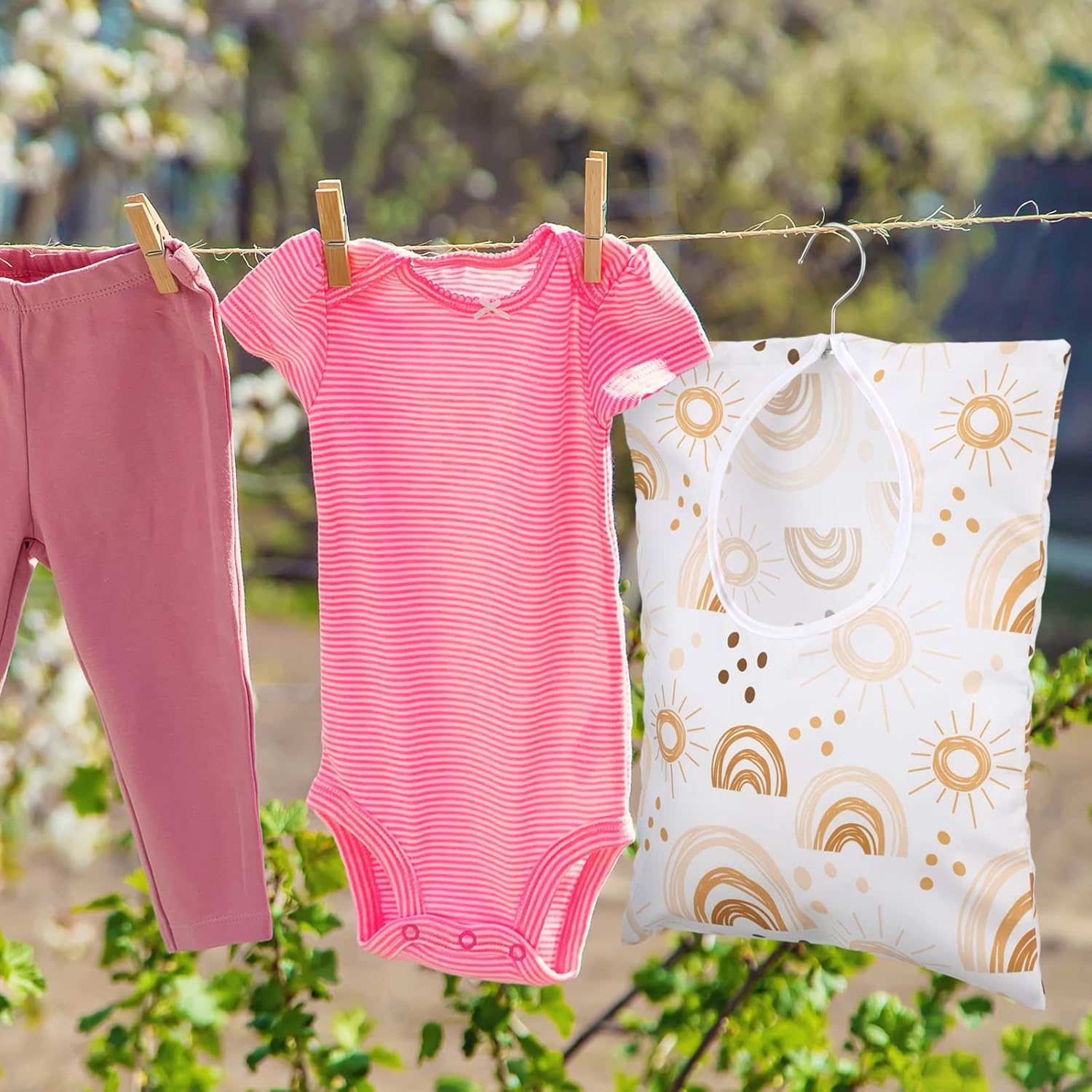 - Summer Theme: package includes 2 pieces of clothespin bags with hanger in different designs, which can add charm to your home; Proper quantity can satisfy your different daily use and replacement needs