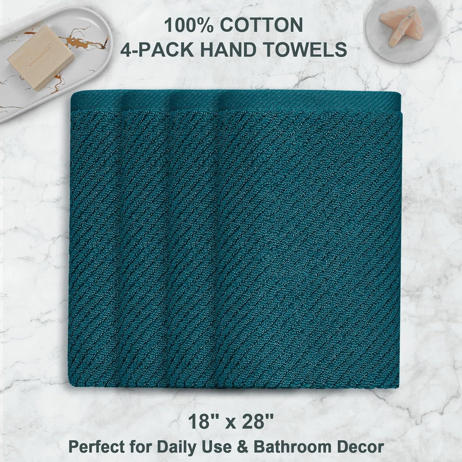 VOOVA & MOVAS Bathroom Hand Towels - 4PC Large 18" x 28", 100% Cotton | Lightweight | Thick | Quick Dry | Soft | Absorbent, Hand Towels for Showering, Bathroom Essentials, Deep Turquoise