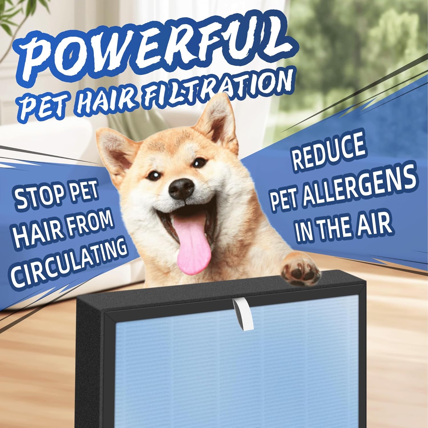 - 【ACTIVATED CARBON PRE-FILTER】:The activated carbon pre-filter of filter collects dust,pet hair,and other large particles, while extending the life of the HEPA filter.Treated carbon take in volatile organic compounds from the air and reduces odors from smoking, cooking and pets.