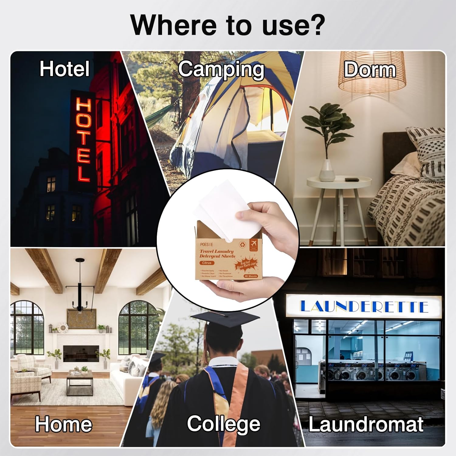 - Travel Laundry Solution - 40 sheets laundry wash sheets in a convenient, recycle container. Perfect for on-the-go laundry needs during travel, camping, or college life