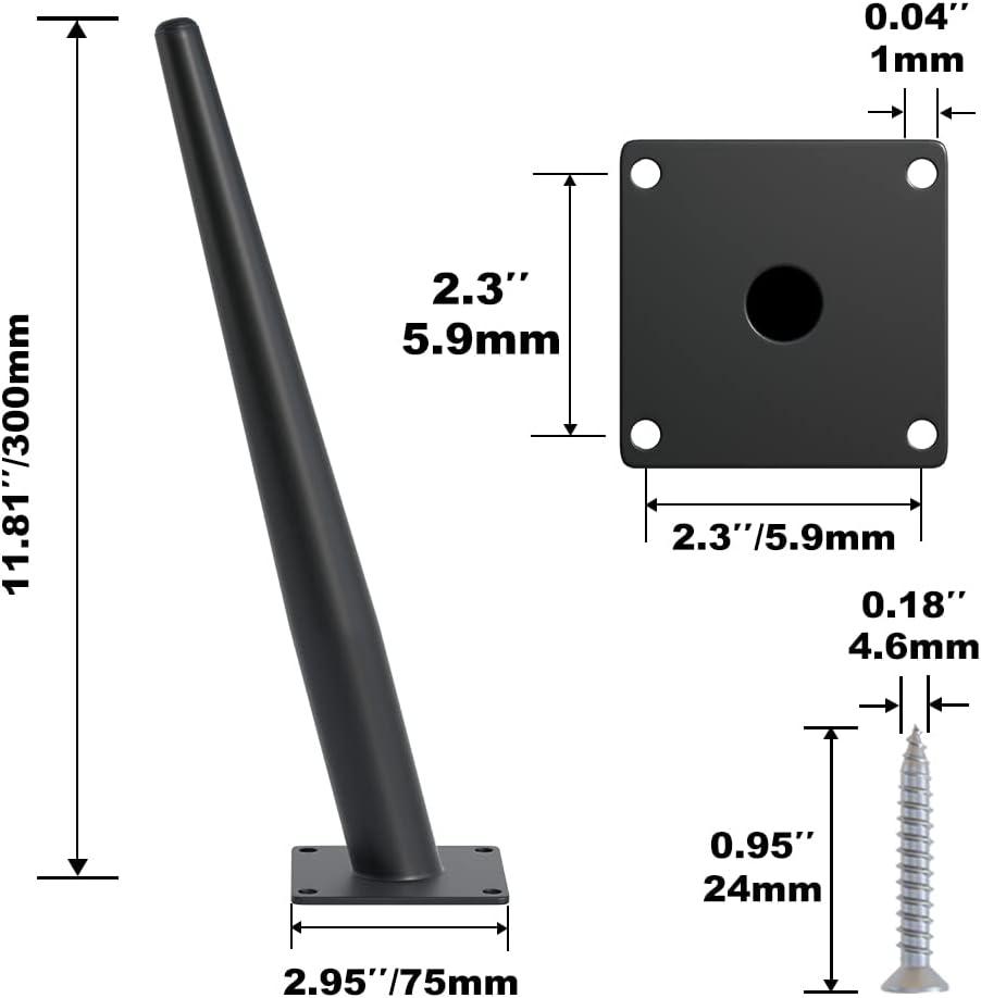 4PCS 12 Inch Matte Black Tapered Angled Legs for Furniture, Metal Mid Century Mordern Feet, Heavy Duty Slanted Stand Legs Kit for Couch, Coffee Table, Desk, Dresser, Sofa, Chair
