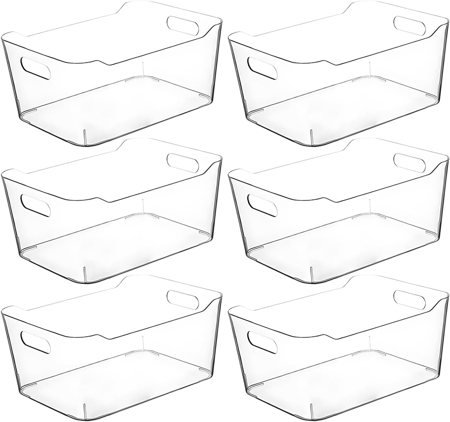 Clear Plastic Storage Bins, Perfect for Kitchen Organization or Pantry Organization and Storage, Medium Fridge Organizer Plastic Bins, Pantry Organization and Storage Bins, Cabinet Organizers