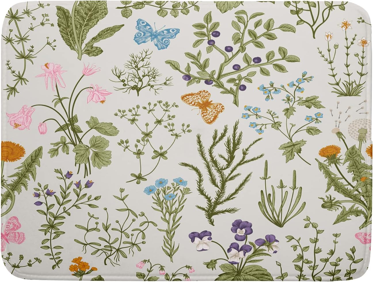 Wild Flowers Plant Dish Drying Mats for Kitchen Counter 16x18 Inch,Sage Herbs Kitchen Drying Mat,Botanical Plant Dishes Pad Dish Drainer Rack Mats Absorbent Fast Dry Kitchen Accessories