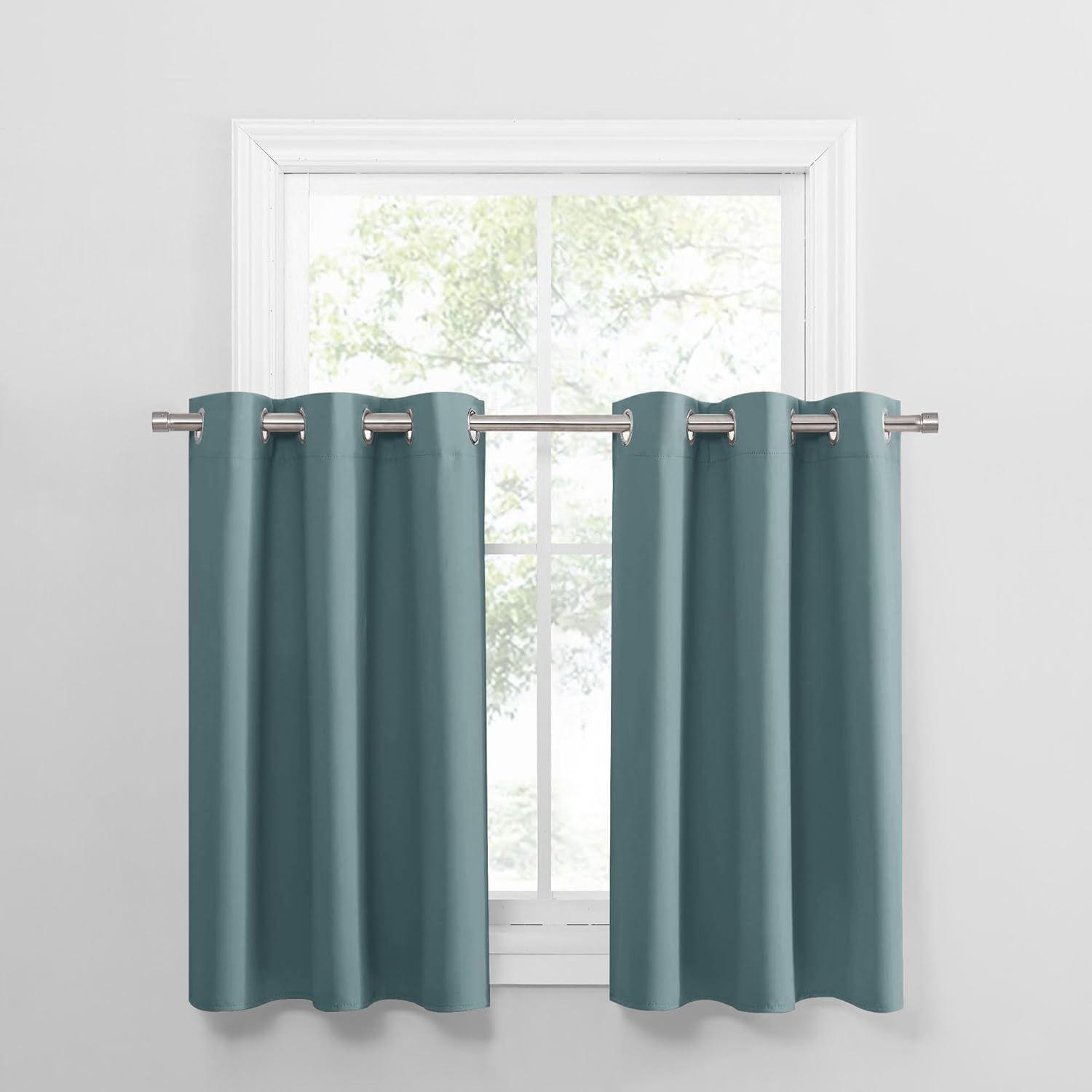 PONY DANCE Small Curtains Blackout, Privacy Energy Efficiency Mini Curtains for Kids Bedroom RV Camper Windows Trailer Bathroom Kitchen Cabinet Window, W 42 x L 36, Fluorescent Blue, 2 Panels
