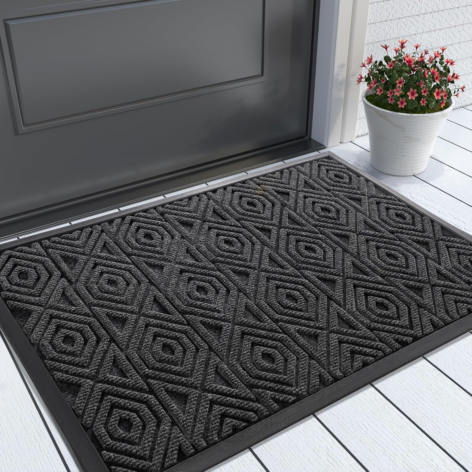 - [CAPTURE DIRT AND MOISTURE] Yimobra front door entryway mat outdoor with unique pattern design, forming a detention dam extending in all directions, helping to capture dirt, dust, gravel, mud, sand, grass or other messy debris and prevent them from entering Indoor; The surface of floor mat beautifully woven polyester fabric absorbs moisture, and the sturdy oblique rubber edge will not accumulate water in rainy and snowy days, keeping your home dry and clean