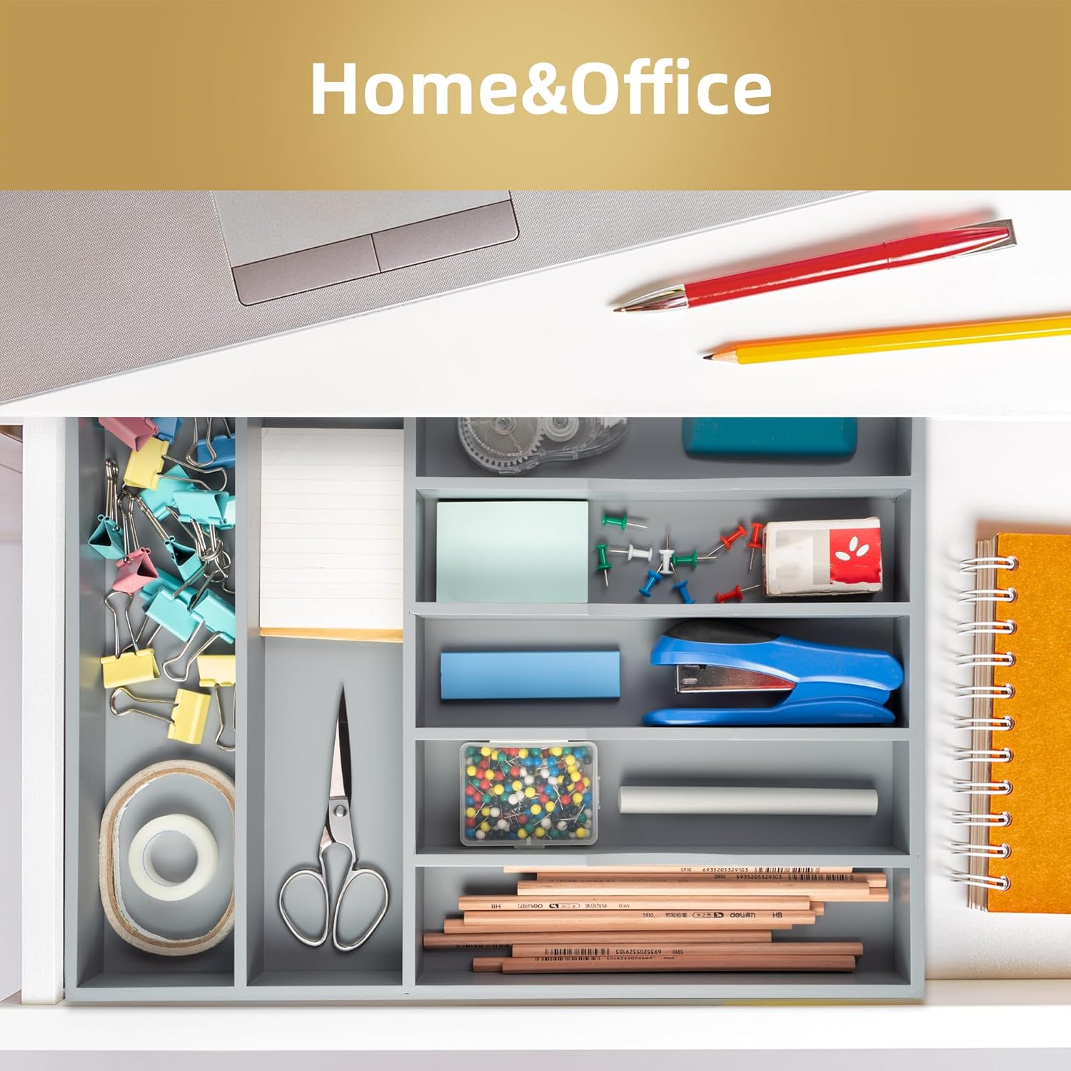 - ăMultifunctional ManagementăOur multi-purpose cutlery organizer is not only suitable for storing silverware, but also suitable for storing disposable tableware, sundries, cosmetics, hair accessories, repair tools, art sets, stationery. With this silverware organizer for drawer, drawers in the kitchen, bathroom, dresser, room, office can be efficiently organized. This is the best home gifts, everyone would like to have such practical gifts for drawer organizer home.