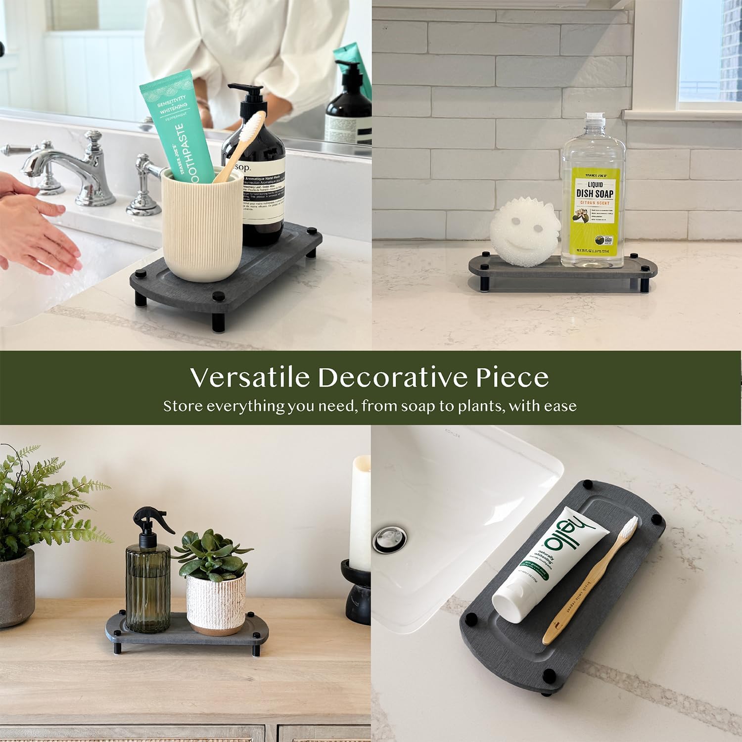 2PCS Instant Dry Sink Caddy Organizer, Fast Drying Sponge and Soap Dispenser Holder for Kitchen and Bathroom Countertop, Stainless Steel Feet, and Non Slip Bottom Dark Gray