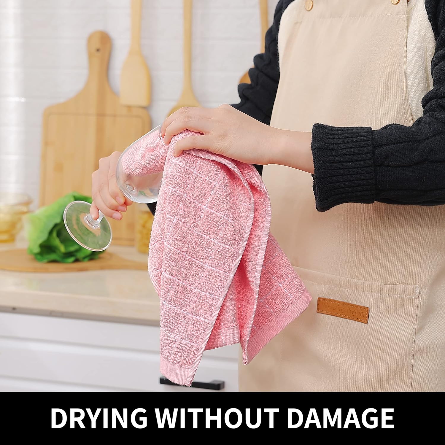 Homaxy 100% Cotton Terry Kitchen Towels(Pink, 13 x 28 inches), Checkered Designed, Soft and Super Absorbent Dish Towels, 6 Pack