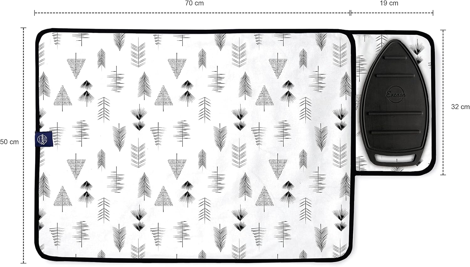 Encasa XO Ironing Mat/Pad (Small 28"x20") with 3mm Padding & Silicone Iron Rest for Steam Pressing on Tabletop or Bed - Heat Resistant, Portable, Quilting & Travel Blanket - Black Arrow