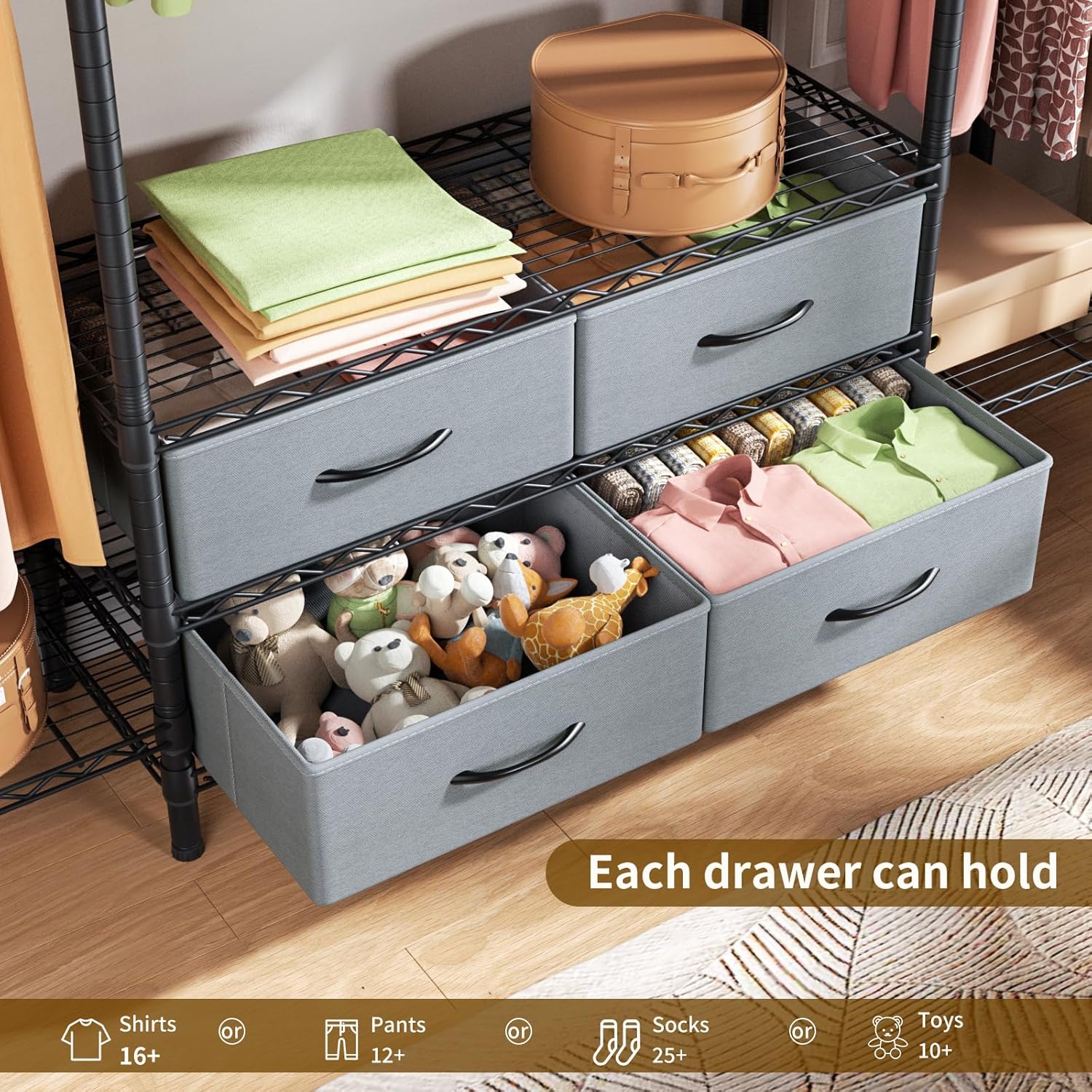 Large Garment Rack Heavy Duty Clothes Rack,Freestanding Closet Portable Clothing Rack with 8 Adjustable Wire Shelves,3 Hang Rods,4 Fabric Drawers,2 Hooks,Metal Closet Storage Wardrobe,MaxLoad 900lbs