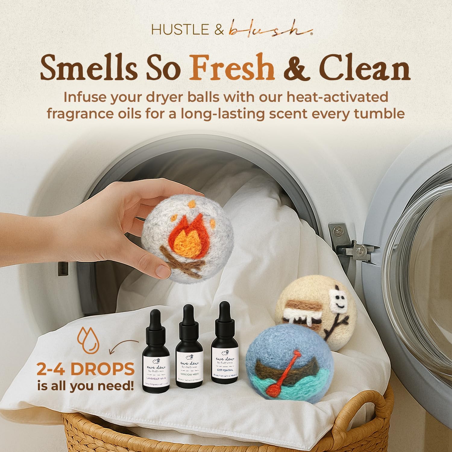 - ADORABLE DESIGNS - A THOUGHTFUL GIFT FOR ANY OCCASION: Bring adventure to your laundry day with this playful set of wool dryer balls. It includes a Guitar, Camper, Mountains, Camp Fire, S’mores, and a Boat/Canoe, all neatly packaged in a reusable linen drawstring storage bag, they’re ideal for gifting at baby showers, housewarmings, or as a fun surprise for someone special. These cute and practical dryer balls are sure to delight everyone!