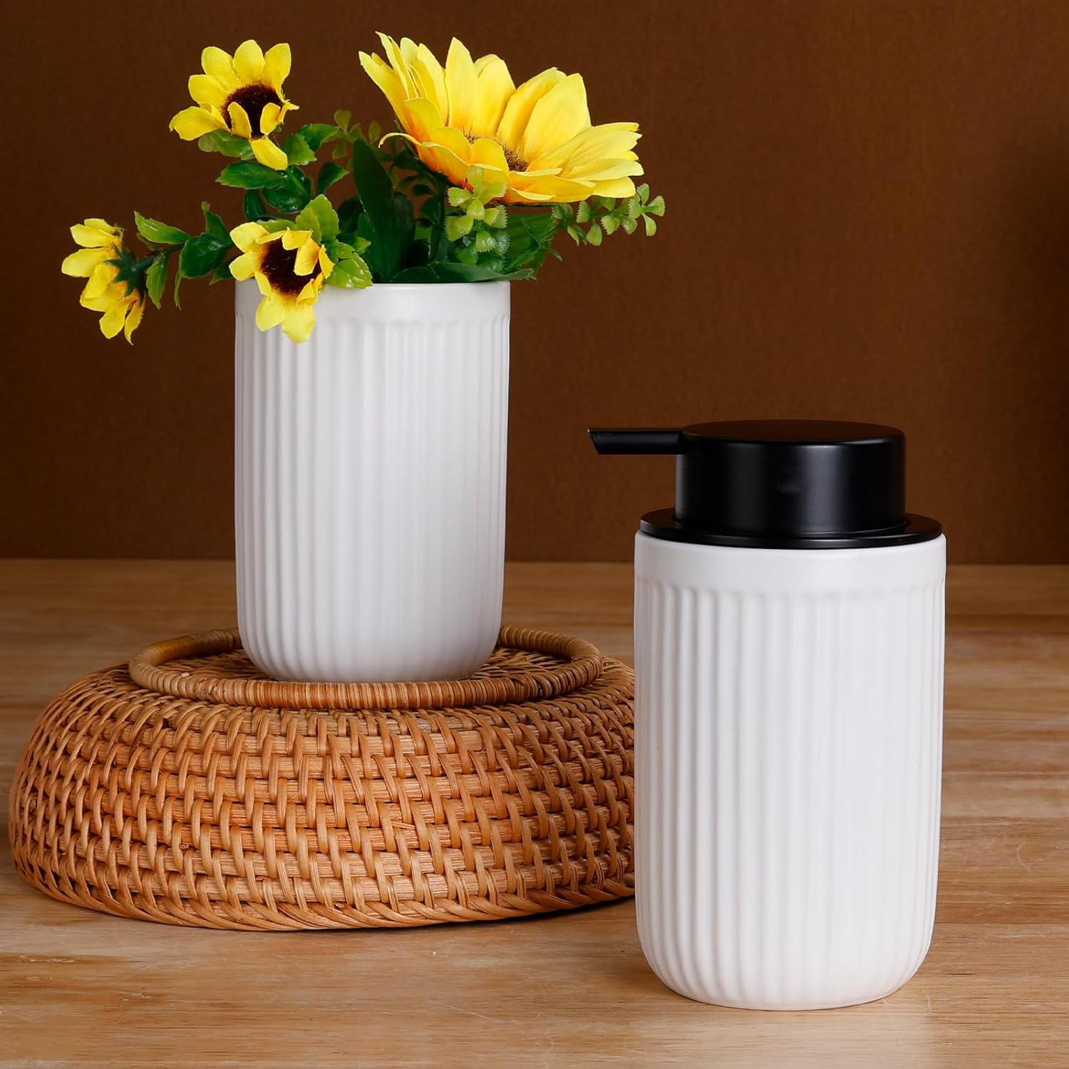 - Reusable Dispenser: The liquid dispenser is made of high-quality ceramic, durable & lead-free. Thick matte porcelain surface, which is more comfortable. It' s safe to use and easy to clean