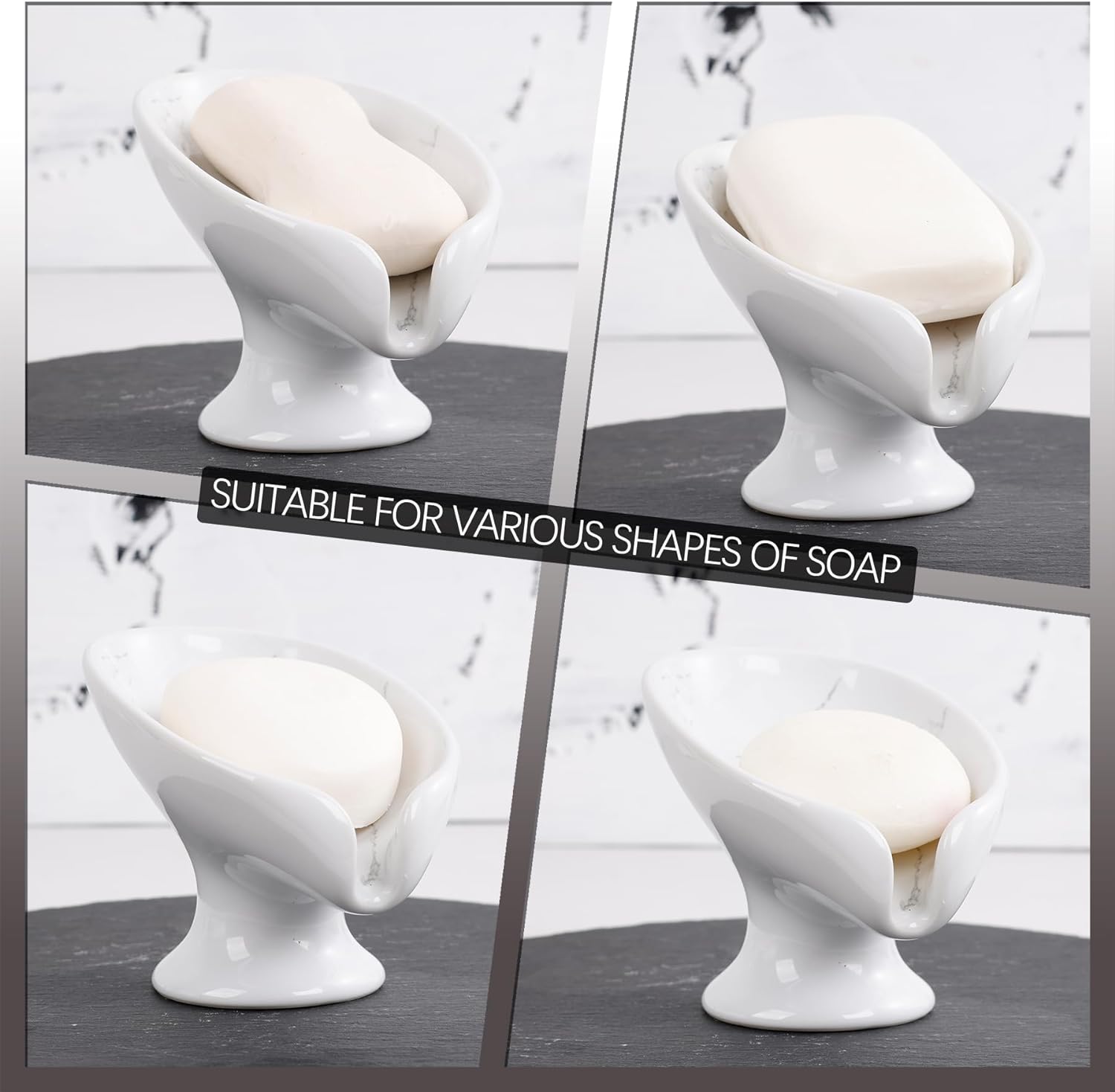 - Self-Draining Design: This ceramic soap dish features a 45° angled design inspired by lotus leaves; promotes quick drainage to keep your bar soap dry and reduce waste; the soap holder stays stable by its own weight, no need for suction cups