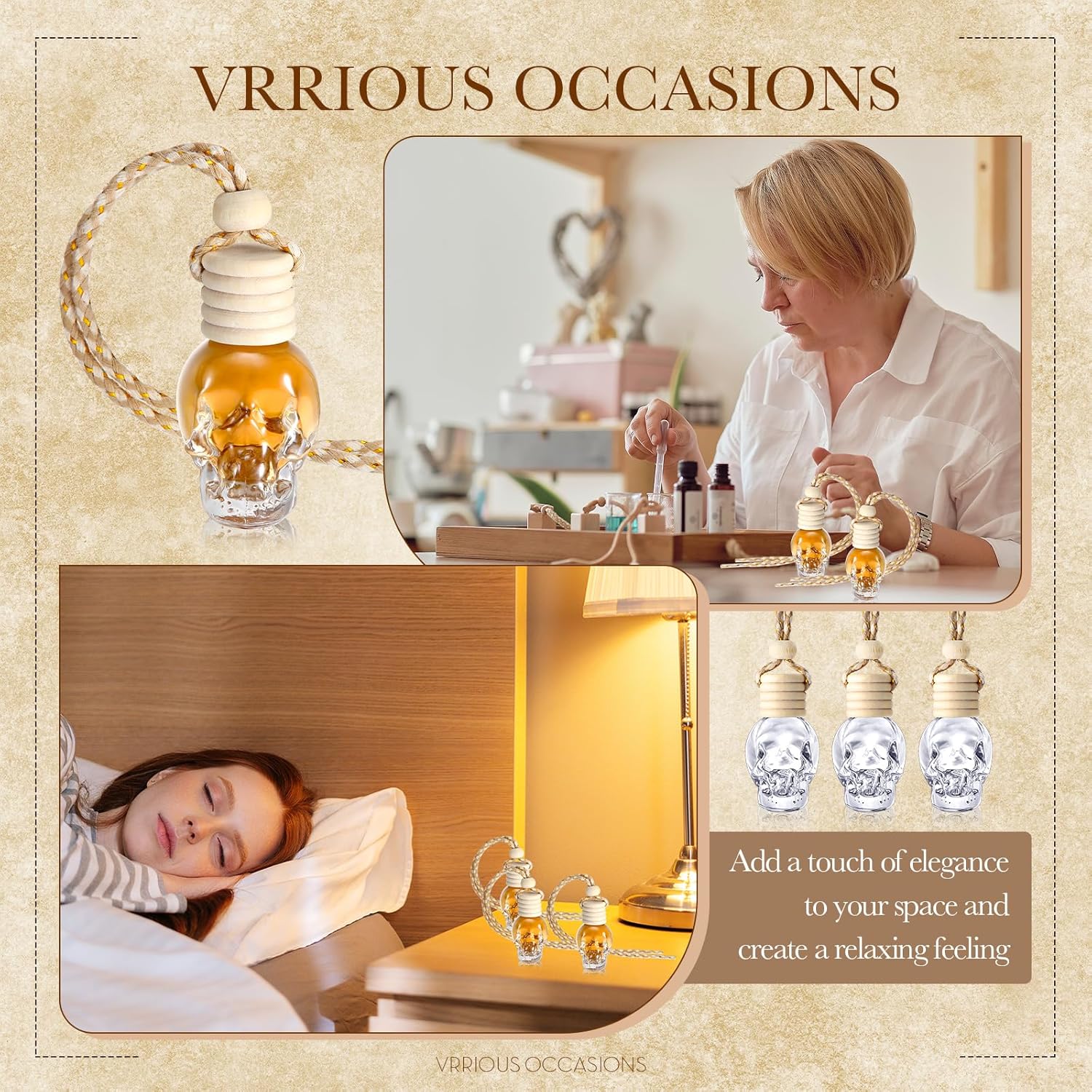 - A Wide Range of Application: with charming and cute appearances, the car perfume bottle is suitable for placing in your cars, bedrooms, offices, kitchens, bathrooms, restrooms, wardrobes, bookshelves, tables, windowsills and more; Not only will it release the fragrance, but also add a touch of elegance and quiet atmosphere to your space