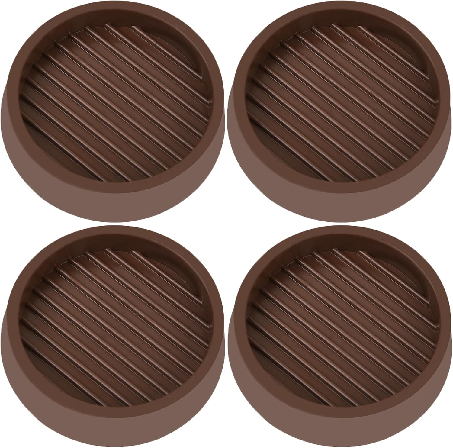 3X3 Round Rubber Caster Cups, Non Slip Furniture Pads, Anti-Slip Gripper, Anti Skid Furniture Feet, Anti Slide Floor Protector for Bed Couch Table Chair Stoppers - Brown, 4 Pack
