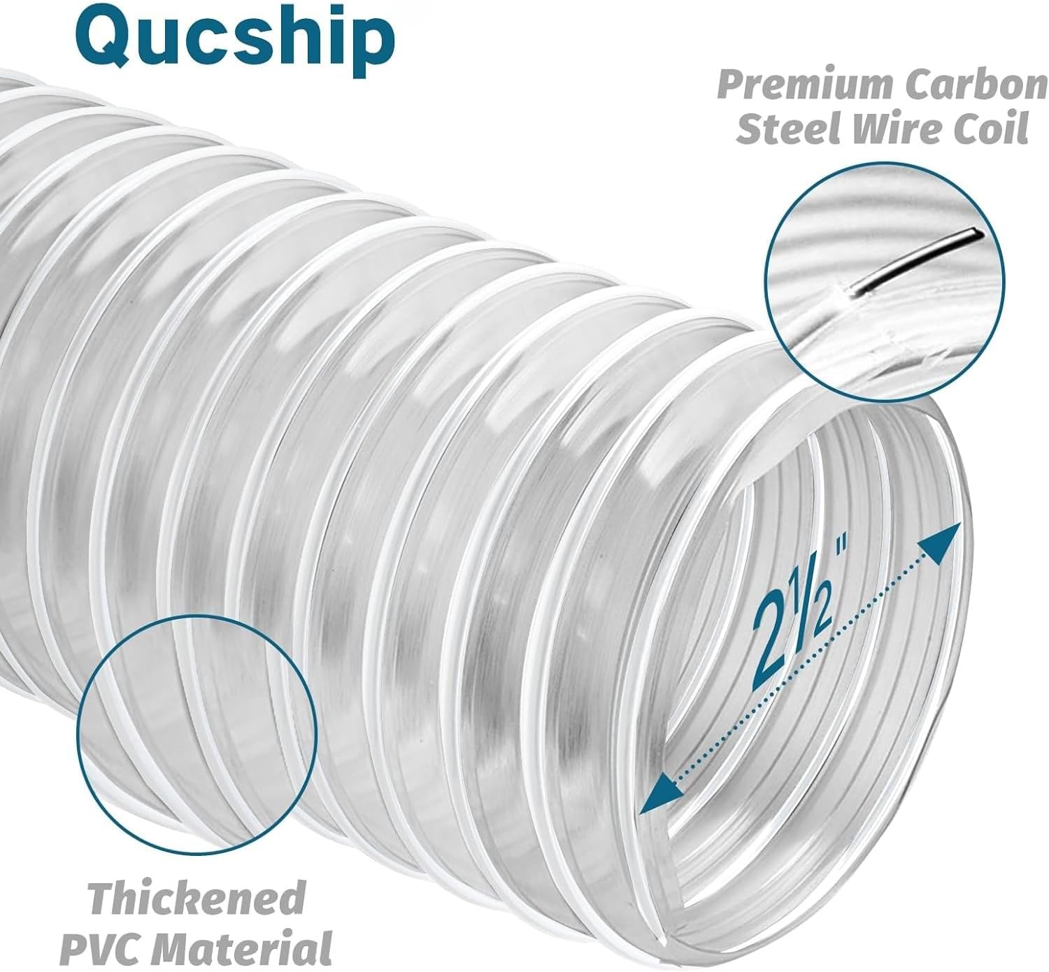 Qucship 2-1/2" x 10' Heavy-Duty PVC Dust Collection Hose, Puncture-Resistant, Flexible Clear PVC Fume Hose with Carbon Steel Wire Coil for Dust Collection Systems