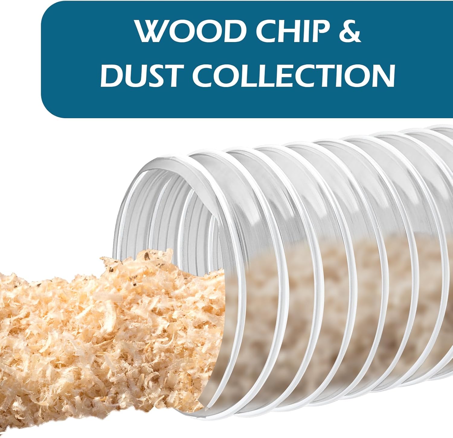 - CLEAR PVC DUST COLLECTION HOSE; The clear PVC material allows you to see not only dust and debris, but also if any buildup or clogging has occurred, dealing with unexpected situations in a timely manner.