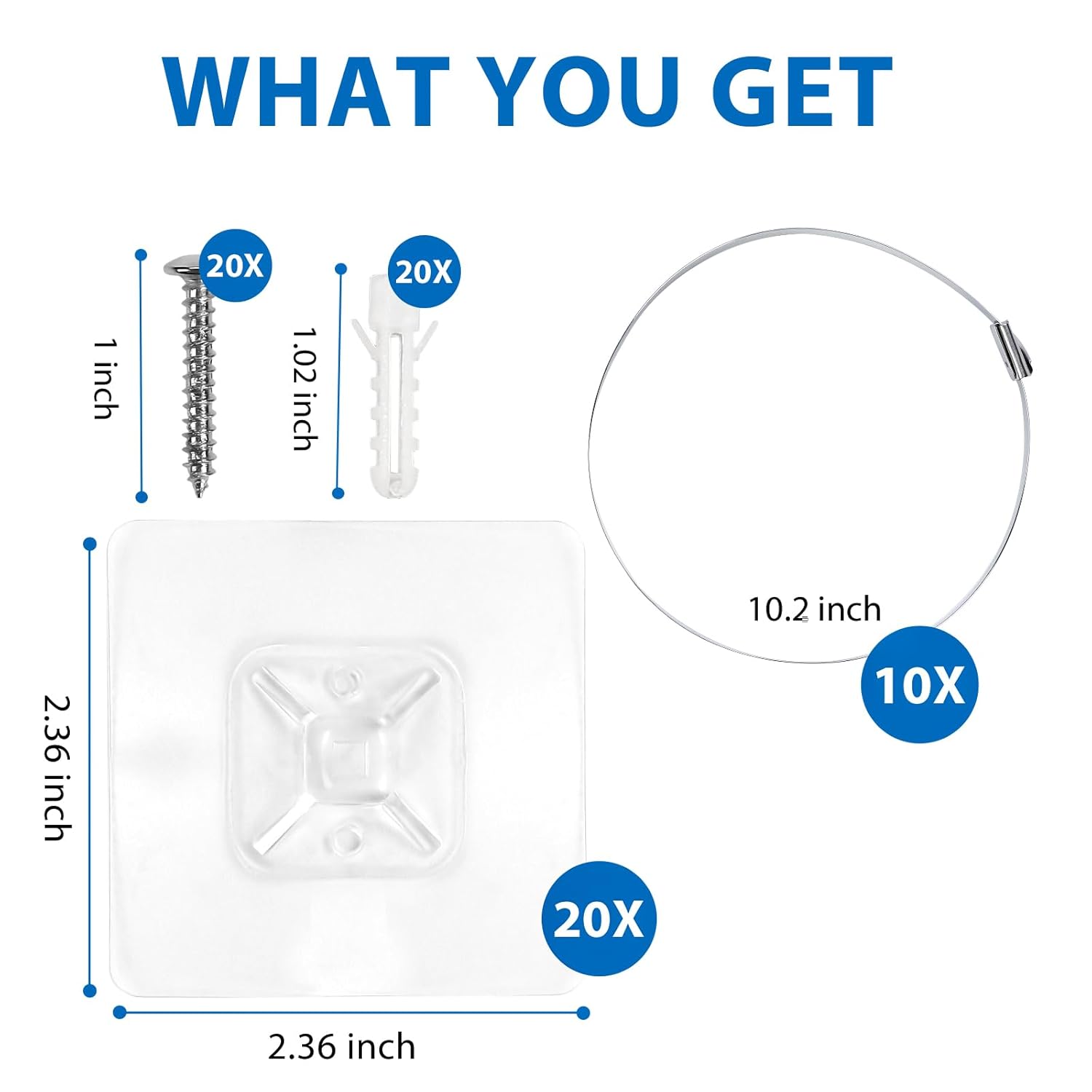 - What You Get - Each package includes 10 pairs of adhesive pads, 10 metal ties, 20 screws/anchors, and detailed user instructions for installing and removing the anchors.