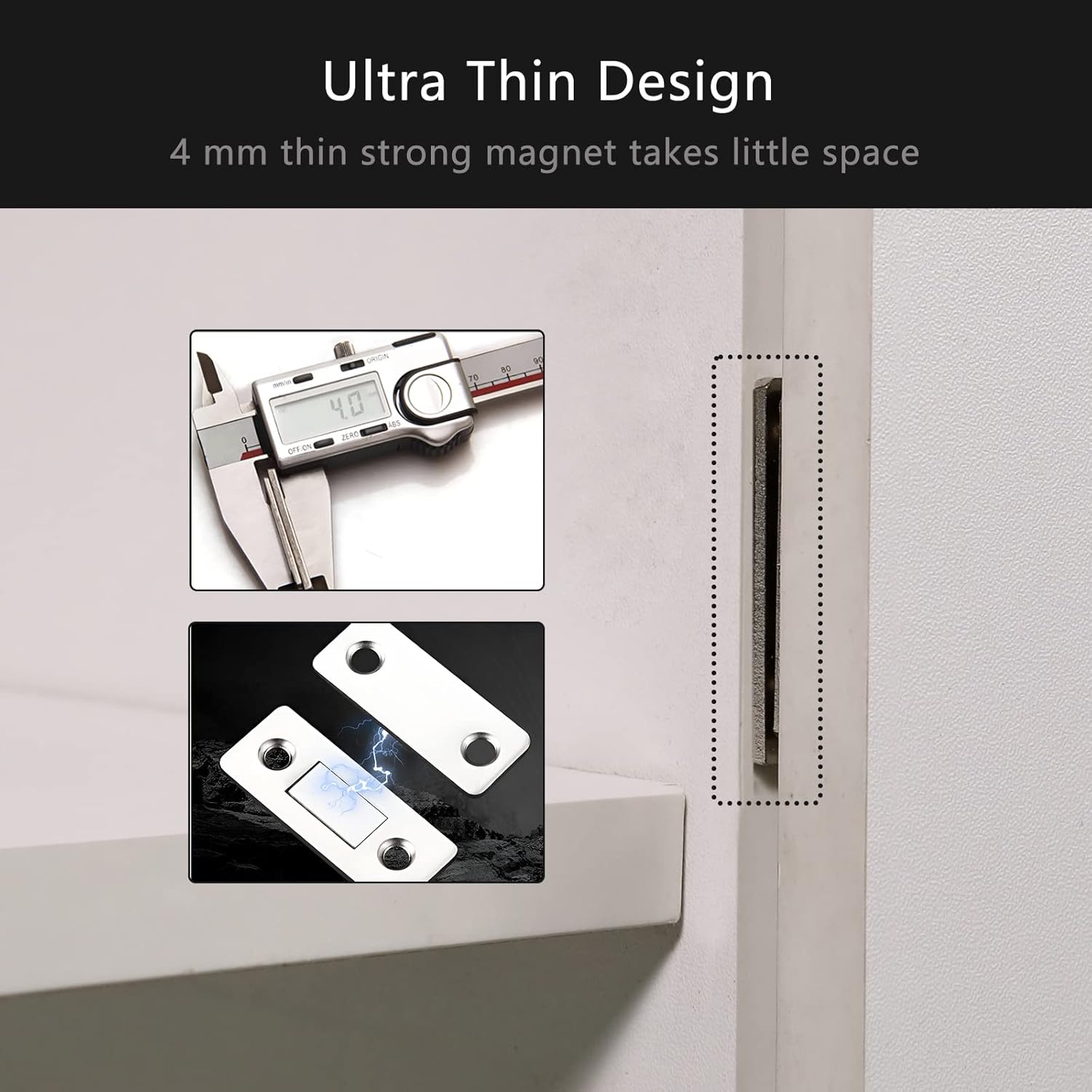 • Ultra Thin Design: Redunest magnetic cabinet door catch has 4 mm ultra thick and simple look, which is so hidden and invisible that it nearly can not be noticed after installation. It is suitable for all kinds of cabinets