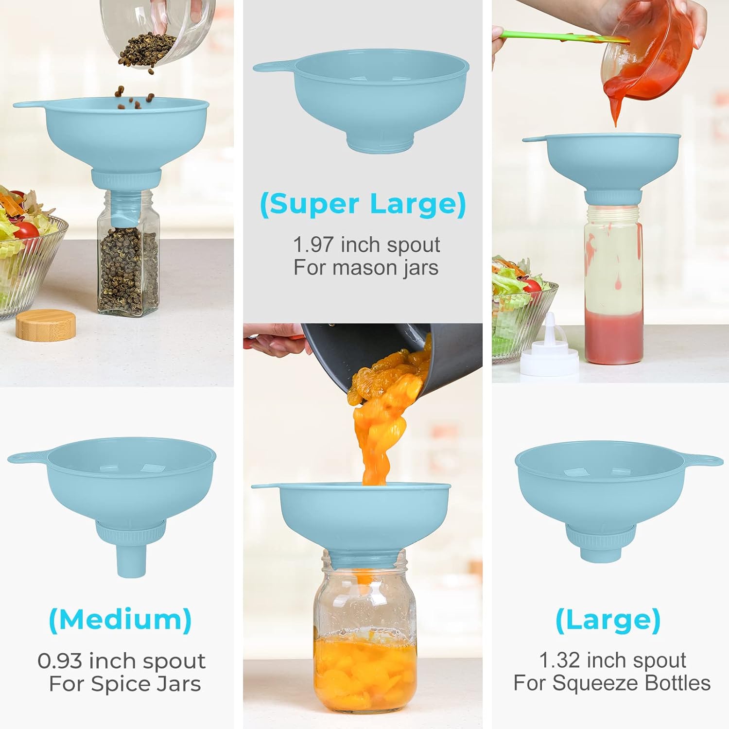 Wide Mouth Kitchen Funnel, Food Grade Plastic Cooking Canning Funnel with 4 Sizes Spouts for Filling Wide and Regular Mason Jars, Spray Dropper Oil Bottle Jug Spices Shampoo Sauce